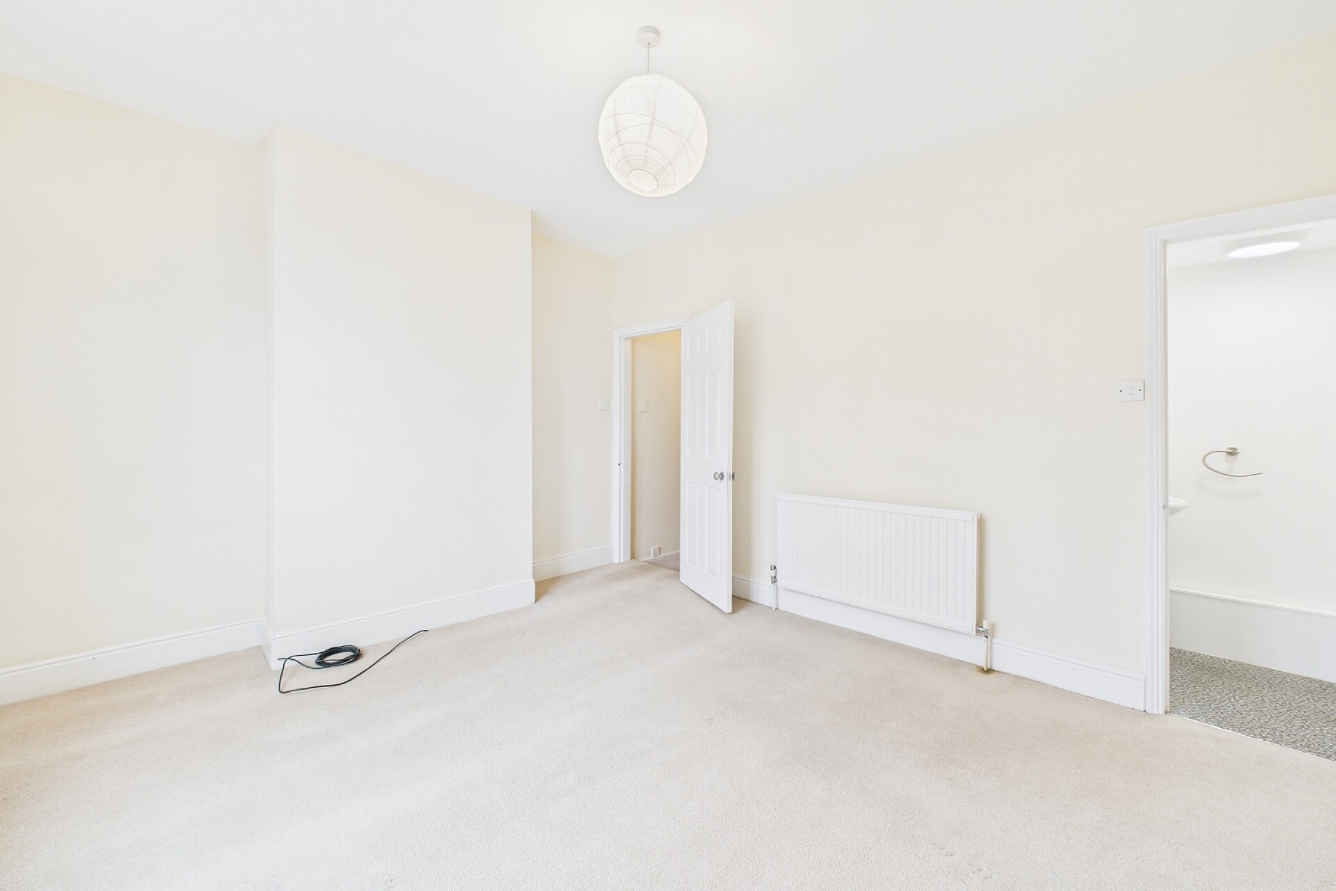 To the second floor is a large double bedroom with a front facing window and ensuite shower room which includes a low flush WC wash hand basin and shower cubicle.