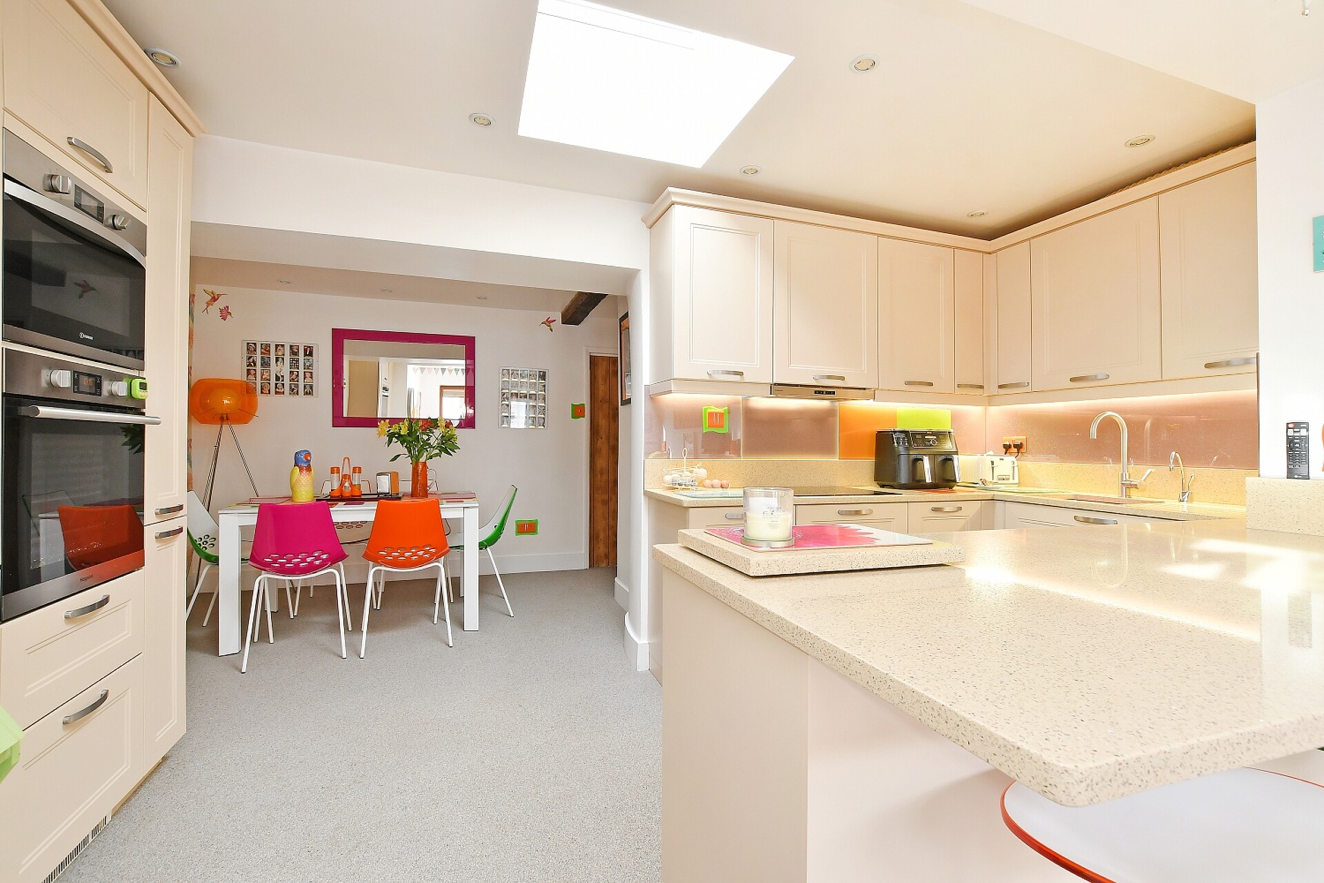 Believed to date back to the early 1700s, the cottage has been lovingly refurbished by the current owners, successfully combining period features such as a stone fireplace and beamed ceilings with modern comforts. The property was rewired with a new fuse box around 2007, with new guttering and ridge tiles, and most importantly, extended to the rear on the ground floor when the stylish kitchen was fitted.