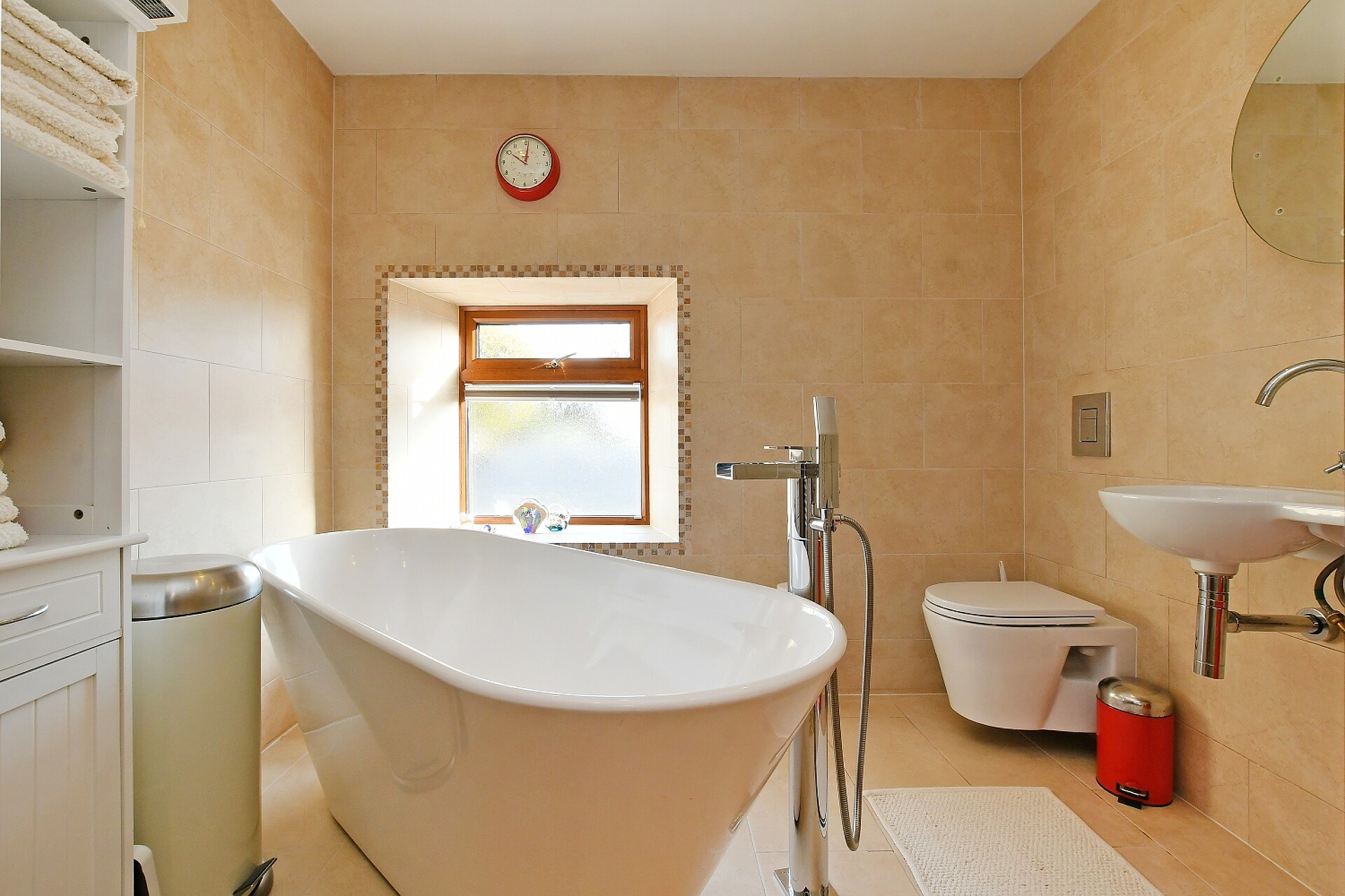 To the first floor, there is a double bedroom with an original feature fireplace and stunning front views, along with a luxurious bathroom featuring a freestanding double-ended bath and walk-in shower. The second-floor bedroombenefits from a Velux-style roof light and en-suite shower room.