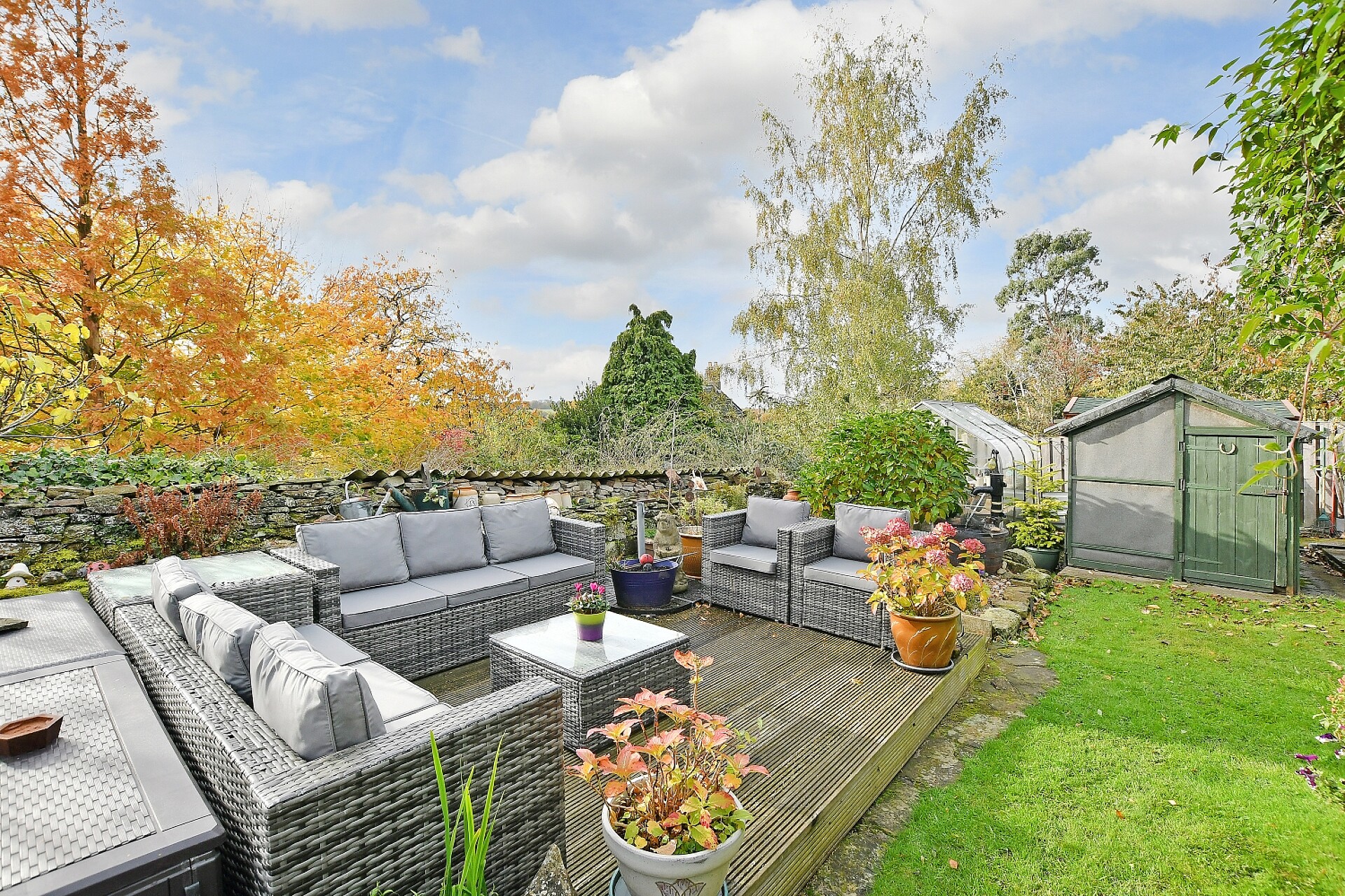 Outside, the mainly lawned front garden features an attractive Victorian street lamp, while to the rear there are two useful outbuildings – one serving as an excellent utility room with Belfast-style sink, WC, and plumbing for a washing machine, and the other previously used as a home office.