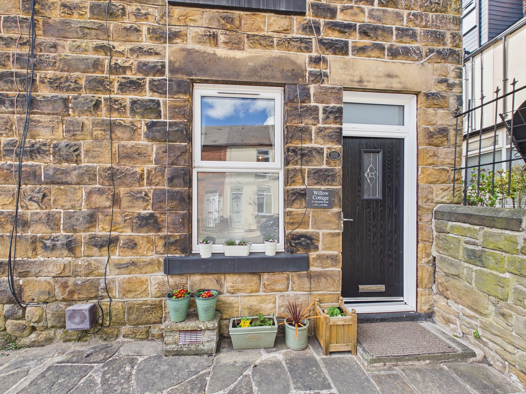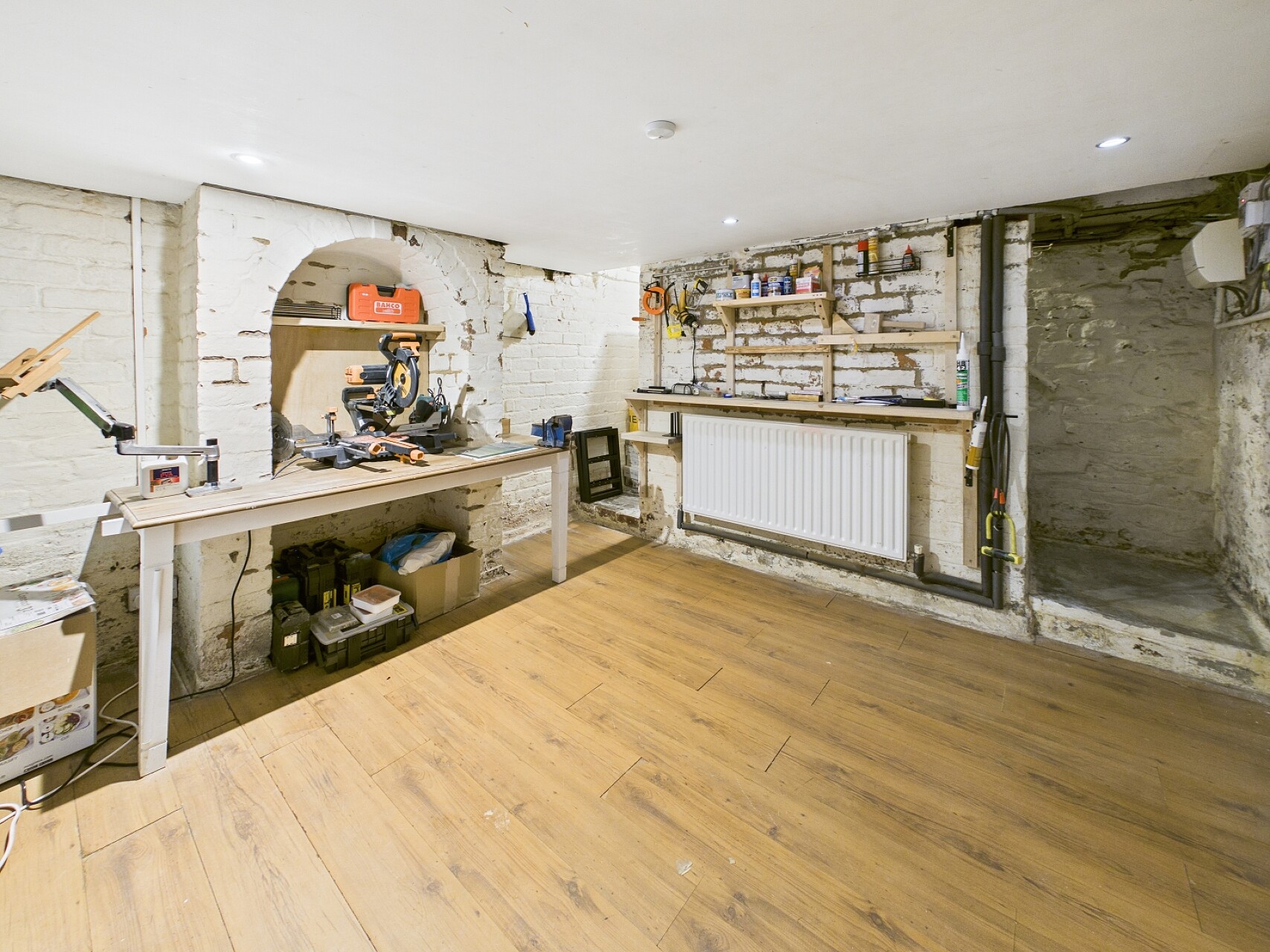 Internally, the property briefly comprises a welcoming lounge, a spacious reception room featuring a characterful fireplace, stripped and stained floorboards, and a front-facing window. To the rear, a superb dining kitchen forms the heart of the home, showcasing an impressive stone fireplace with range cooker inset, quarry tiled flooring, and a range of fitted units with space for appliances. Stairs lead down to a versatile cellar space, complete with laminate flooring, heating, and spotlights—ideal for a home office, hobby room, or additional storage.