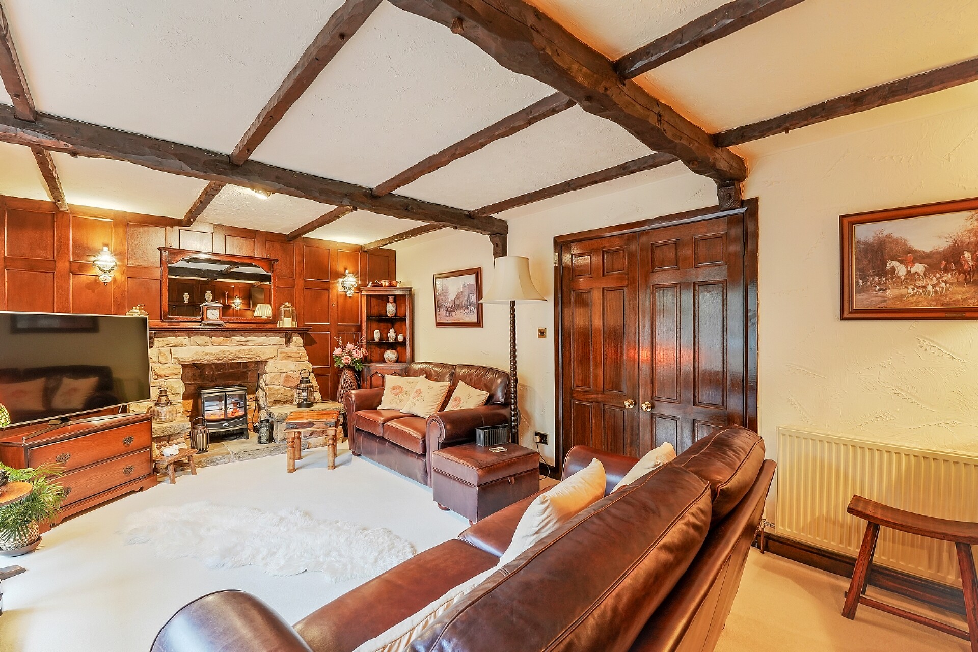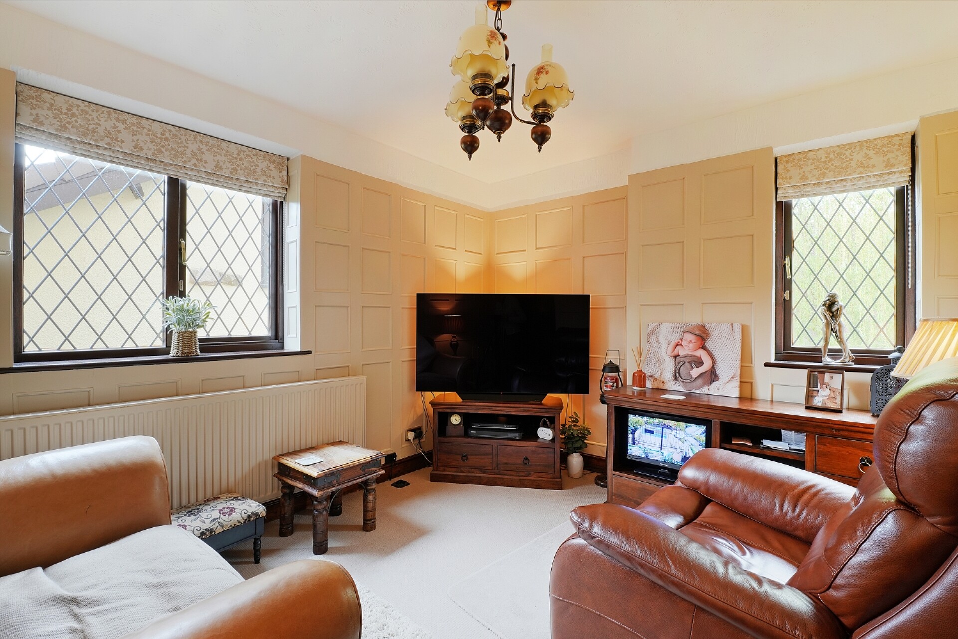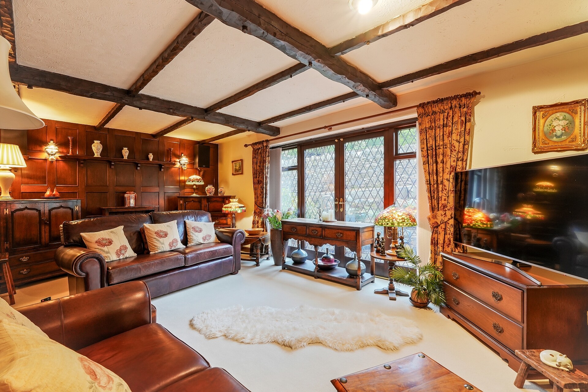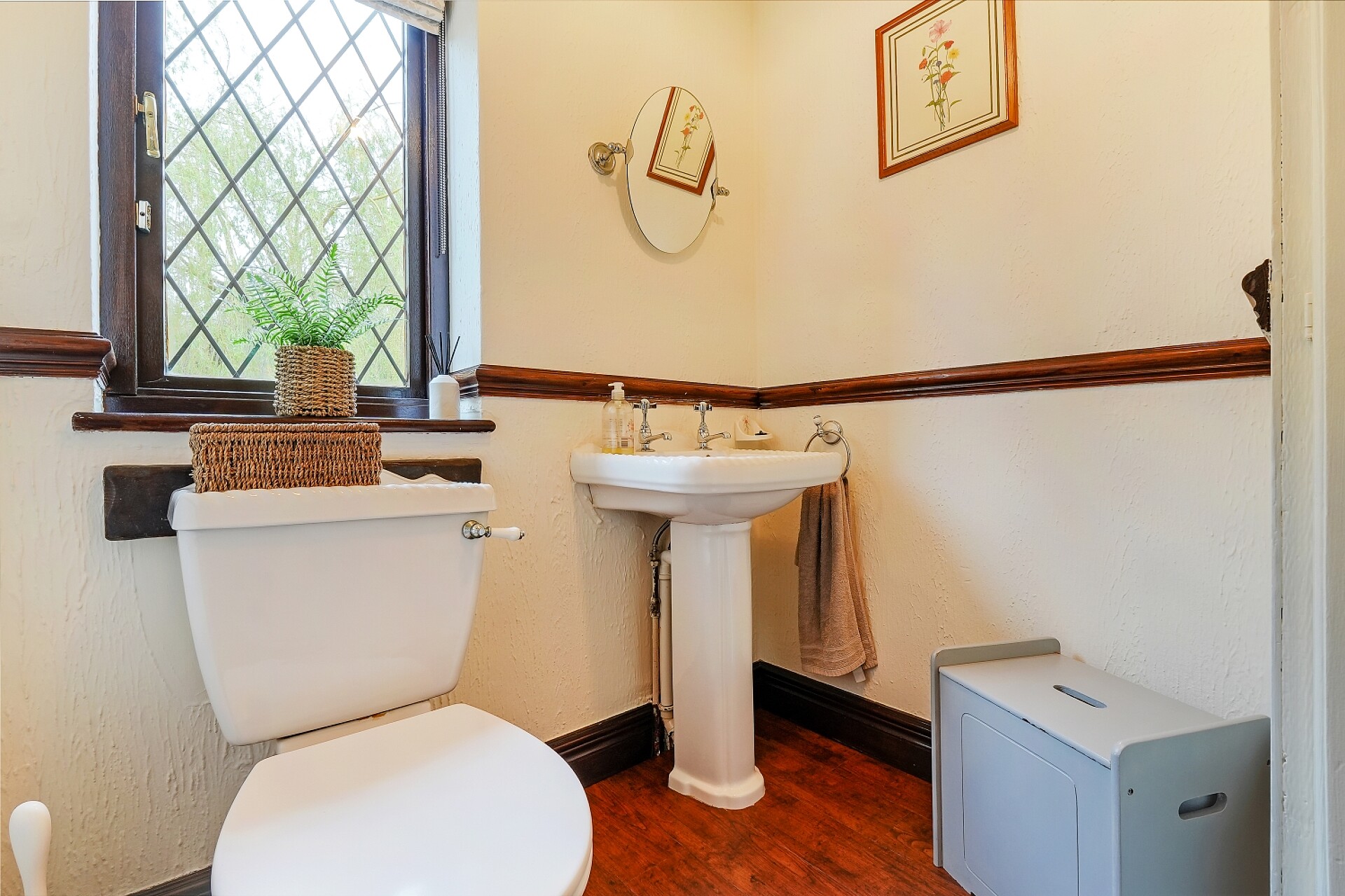 To the rear, the main lounge overlooks the garden and benefits from French doors opening directly onto the patio, allowing plenty of natural light to flow through the space. A traditional stone fireplace forms an attractive focal feature. A further reception room offers flexibility for modern living and could easily serve as a snug, study, playroom or occasional fourth bedroom depending on requirements. A convenient ground floor WC completes the accommodation at this level.