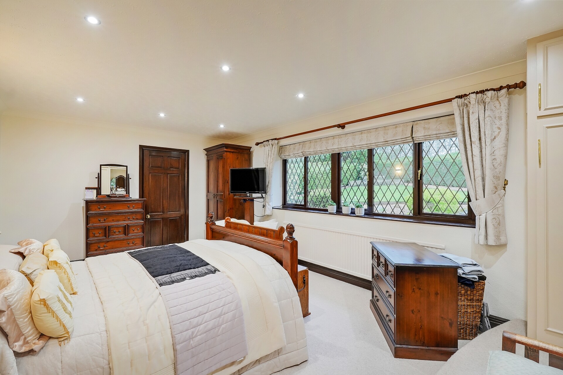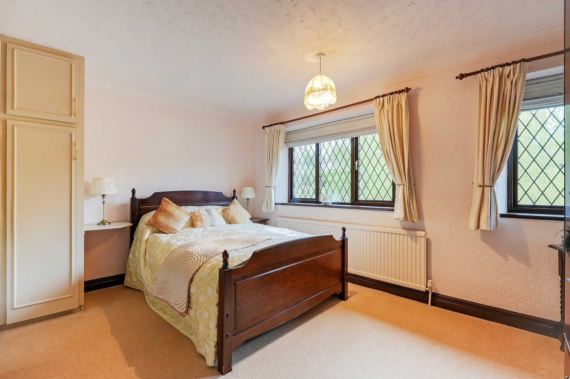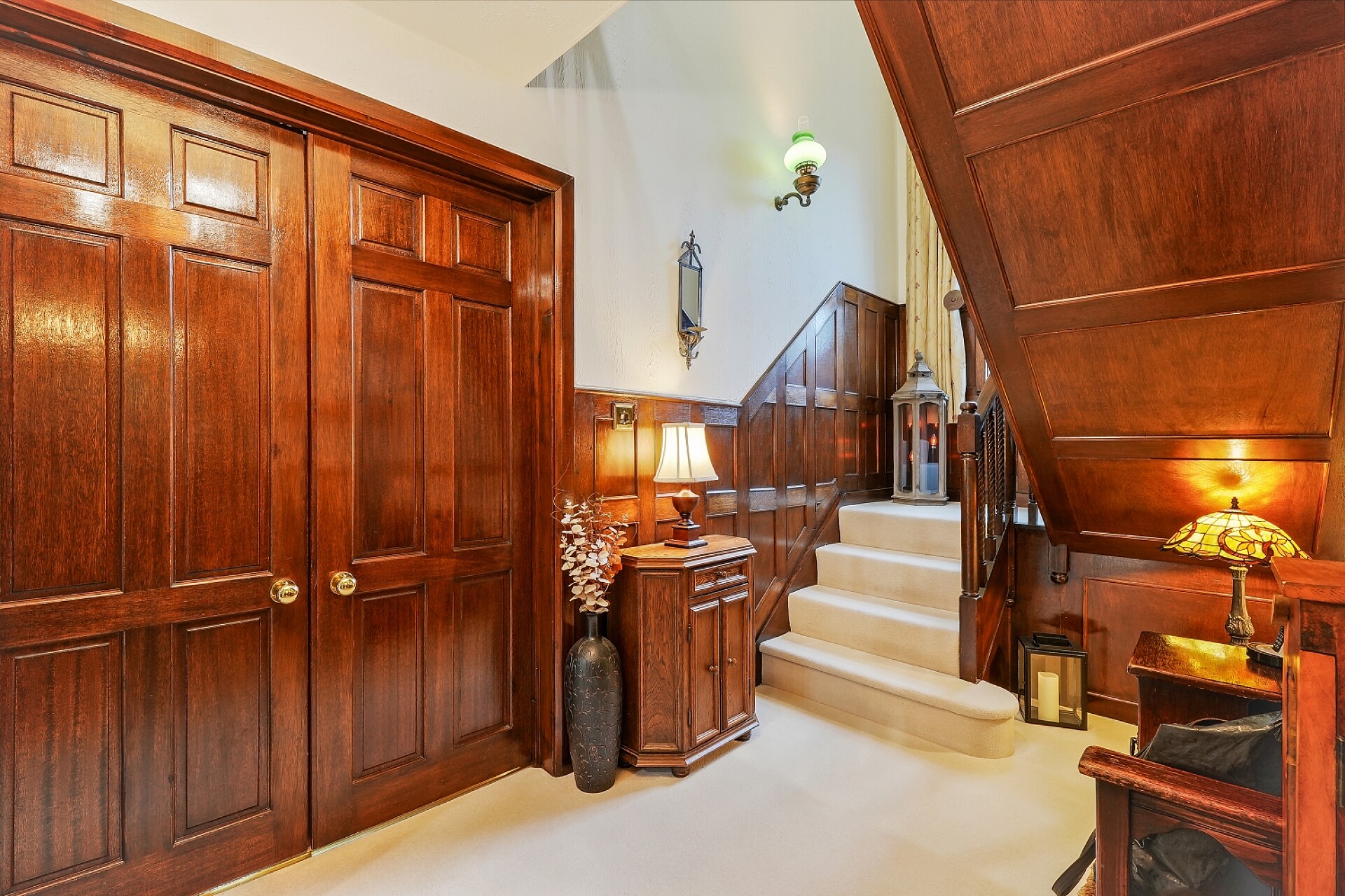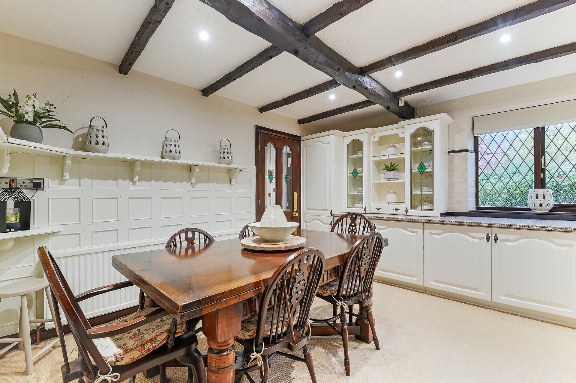 To the rear, the main lounge overlooks the garden and benefits from French doors opening directly onto the patio, allowing plenty of natural light to flow through the space. A traditional stone fireplace forms an attractive focal feature. A further reception room offers flexibility for modern living and could easily serve as a snug, study, playroom or occasional fourth bedroom depending on requirements. A convenient ground floor WC completes the accommodation at this level.