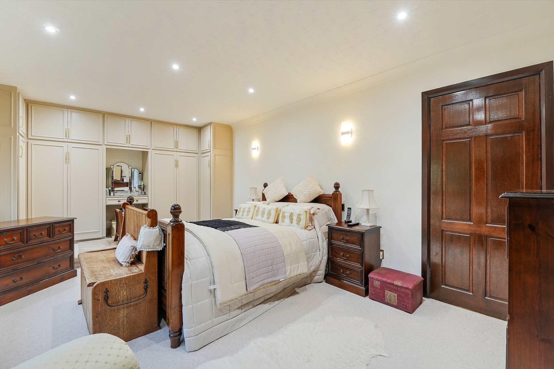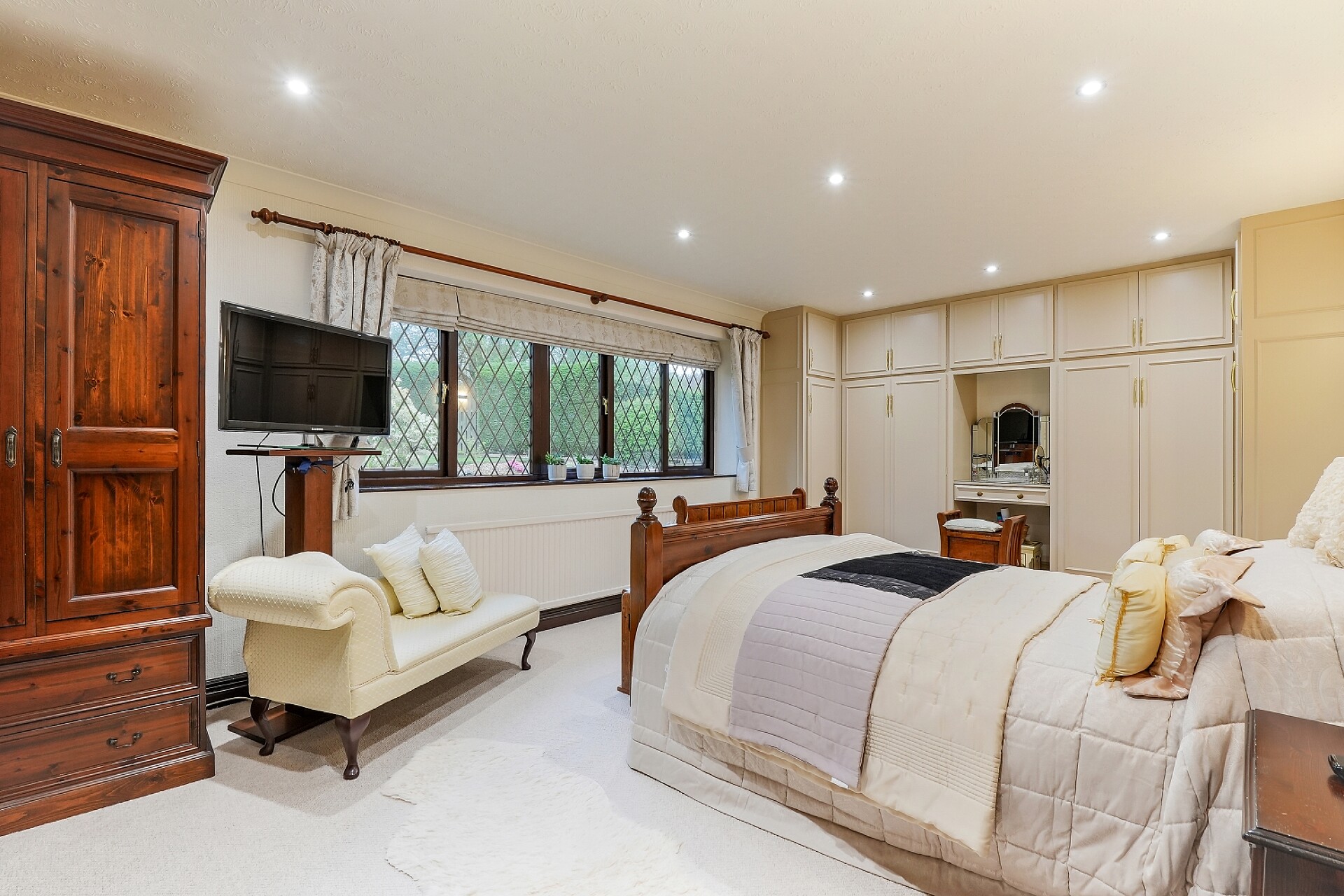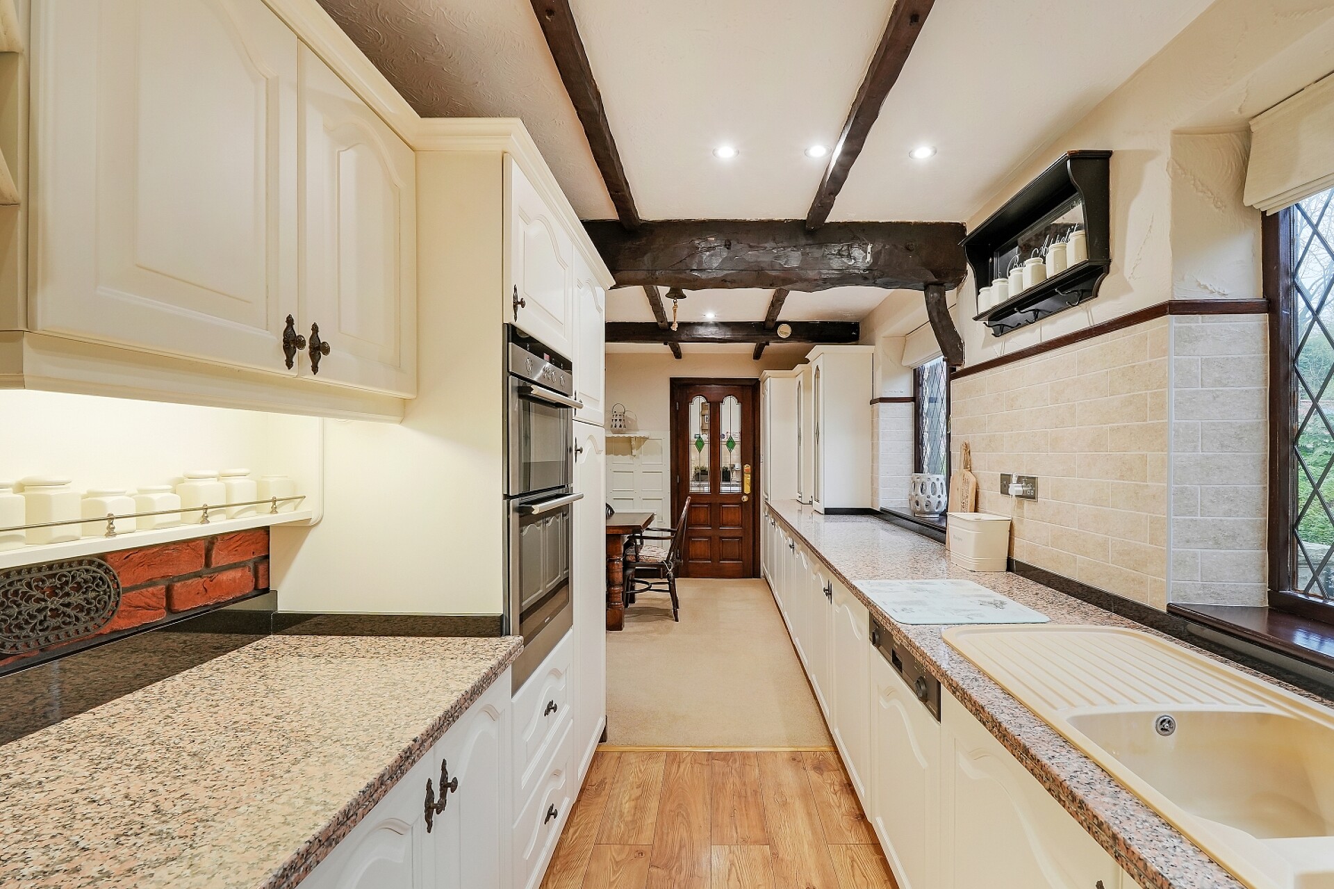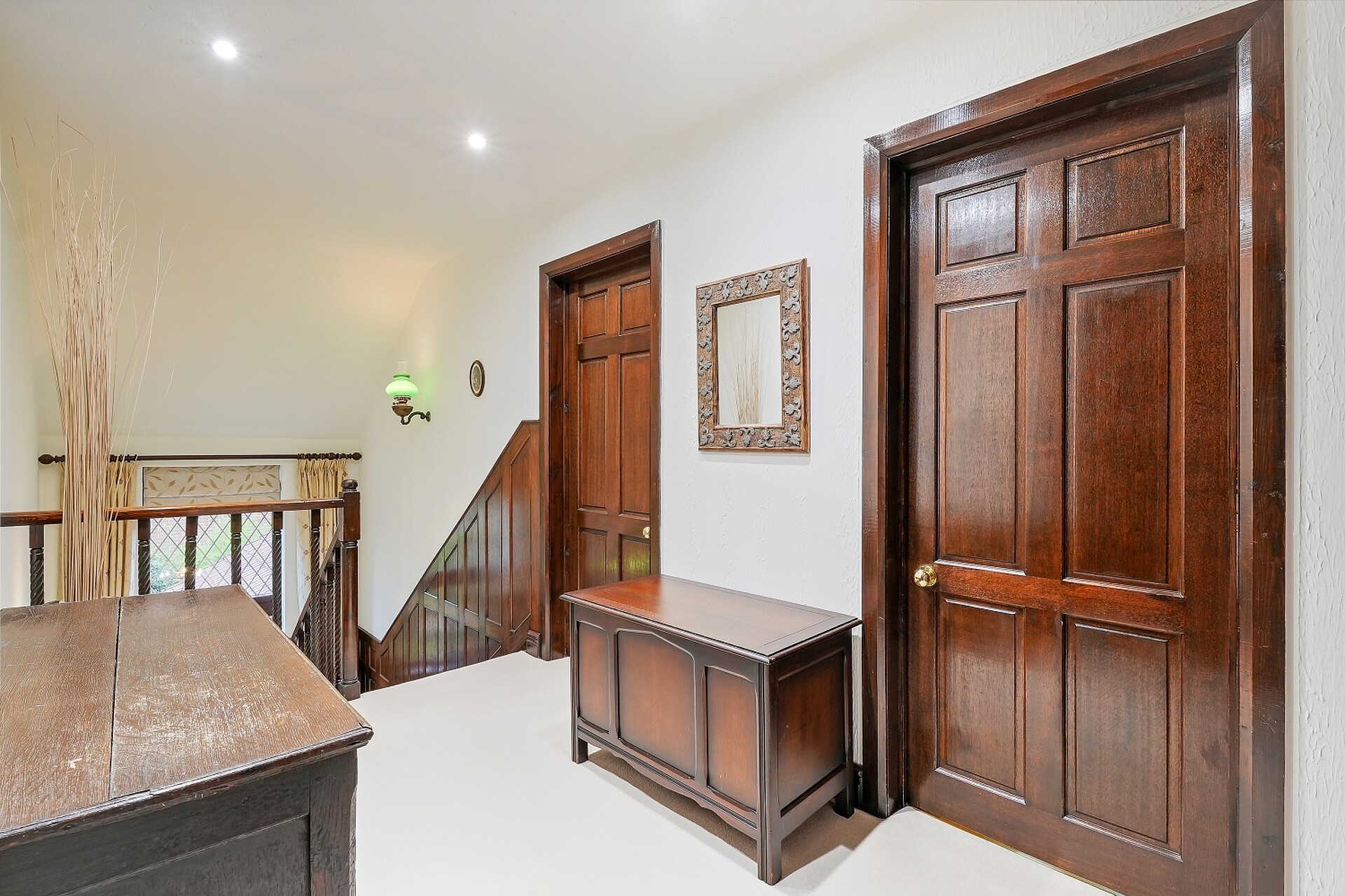 To the rear, the main lounge overlooks the garden and benefits from French doors opening directly onto the patio, allowing plenty of natural light to flow through the space. A traditional stone fireplace forms an attractive focal feature. A further reception room offers flexibility for modern living and could easily serve as a snug, study, playroom or occasional fourth bedroom depending on requirements. A convenient ground floor WC completes the accommodation at this level.