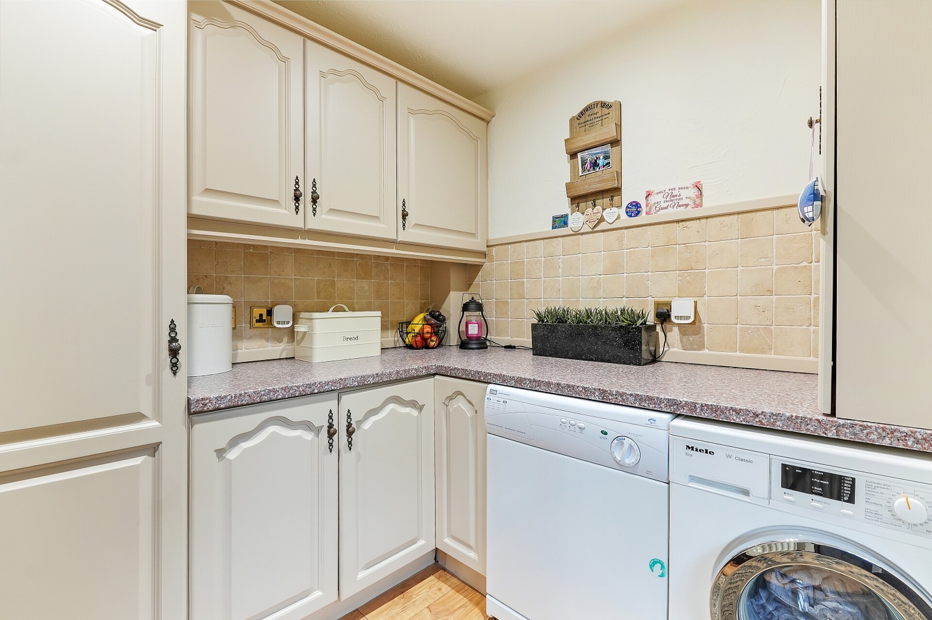 At the centre of the home is a well-proportioned open-plan kitchen and dining area, fitted with a comprehensive range of units complemented by granite work surfaces and integrated appliances. A separate utility room provides additional practicality and storage.
