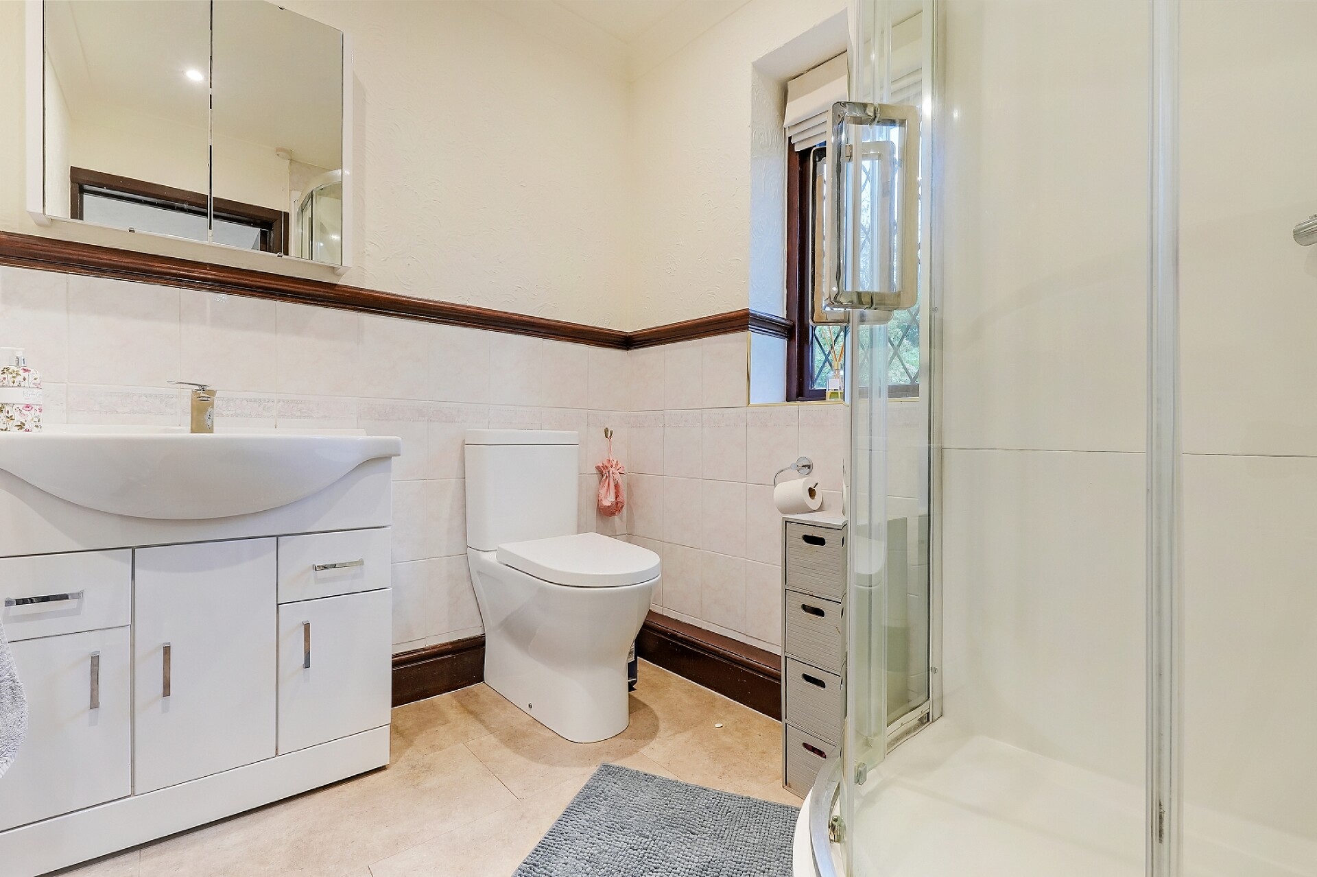 Upstairs, the property continues to impress with three well-sized double bedrooms, each including fitted wardrobes. The principal bedroom enjoys pleasant views across the rear garden and benefits from its own ensuite shower room. The family bathroom is fitted with a stylish four-piece suite, offering both comfort and practicality for family use.