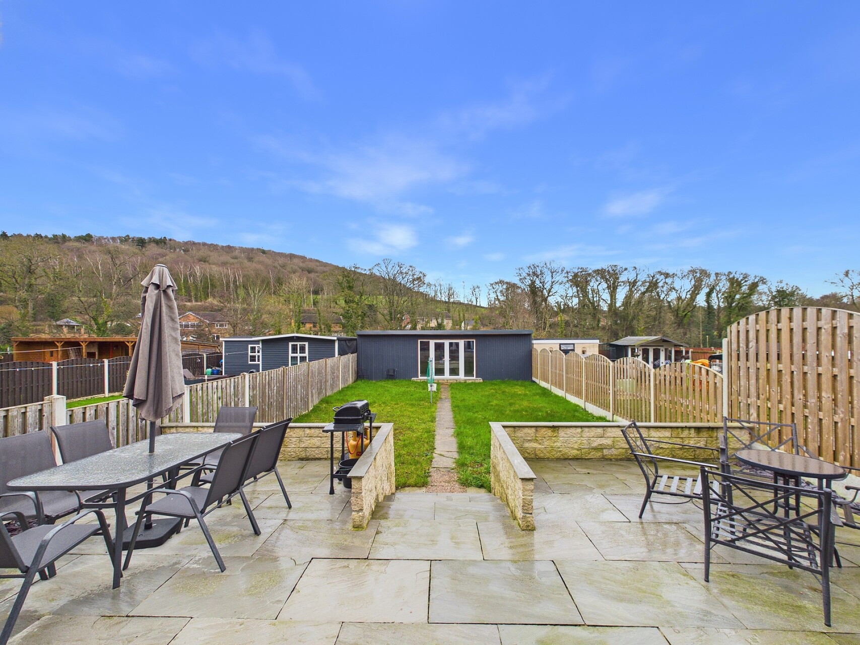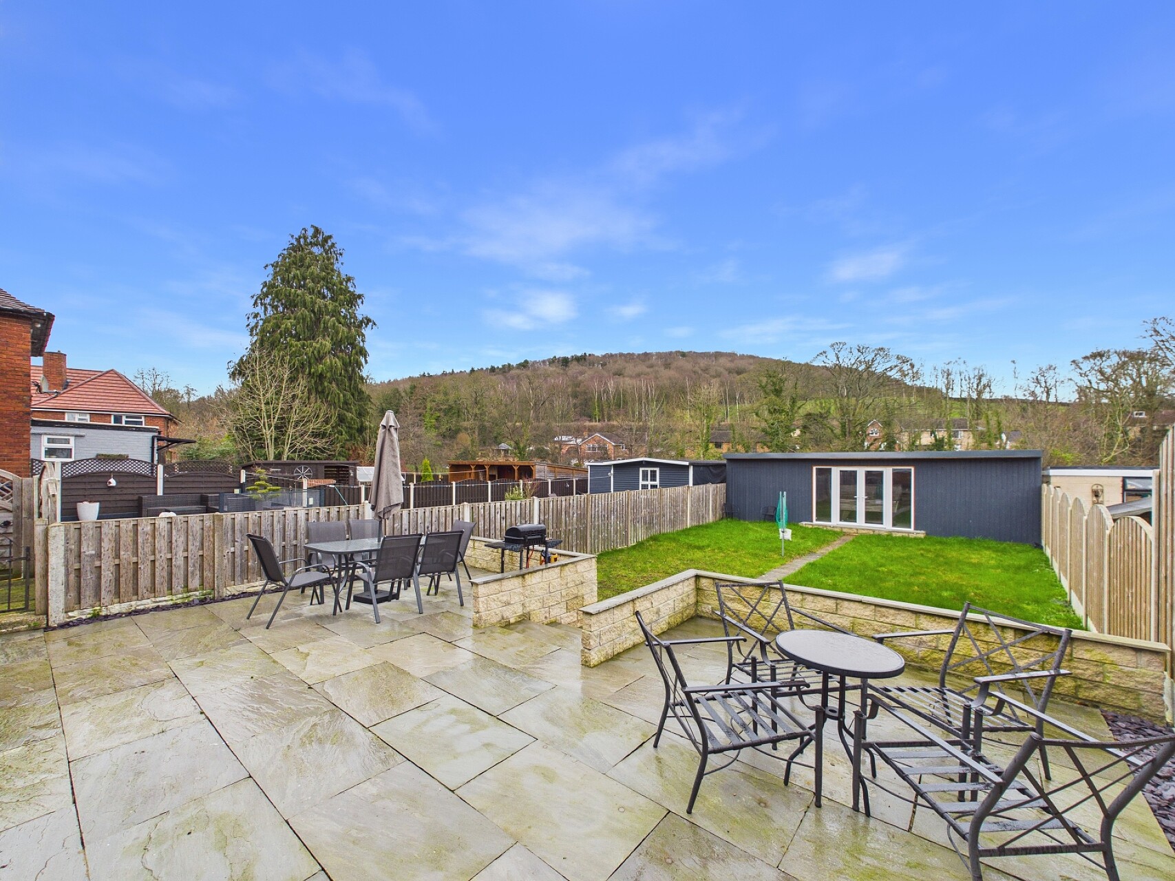 Externally, a driveway provides ample off-road parking for two to three vehicles. The rear garden is ideal for families, featuring a large Indian stone patio, lawned area and the superb insulated garden studio, with an additional adjacent store.