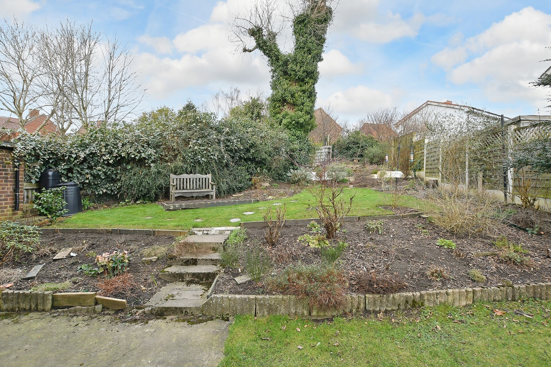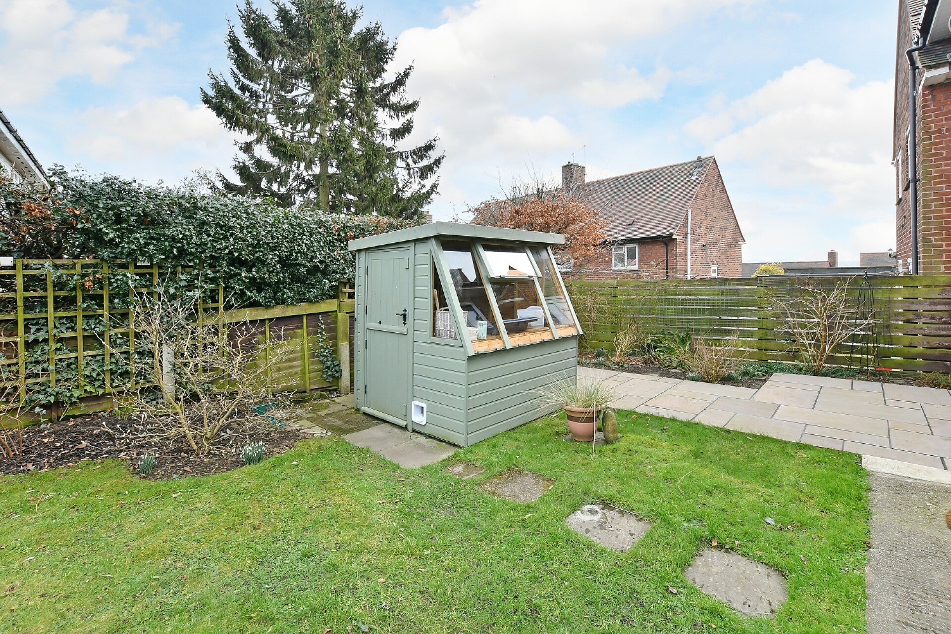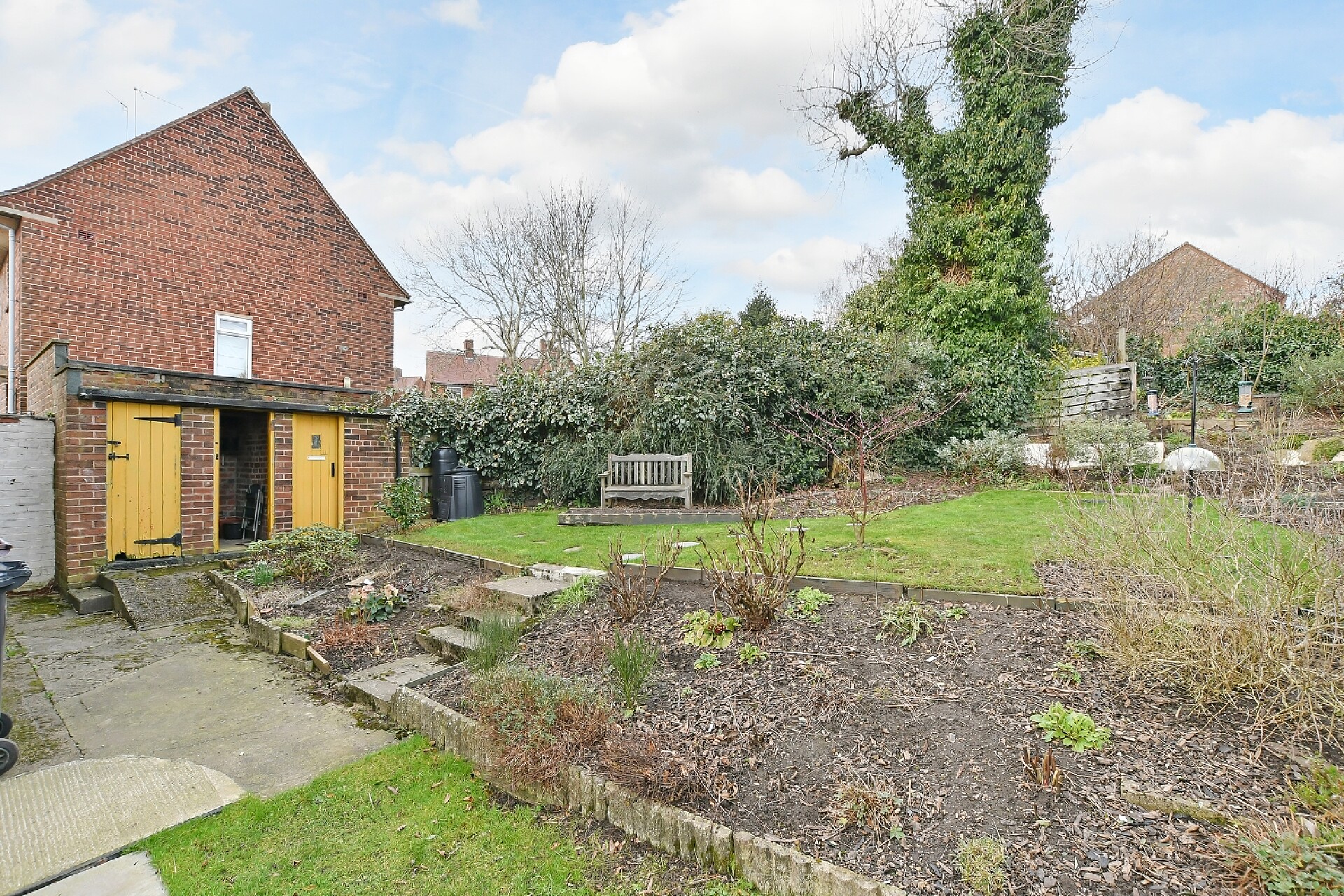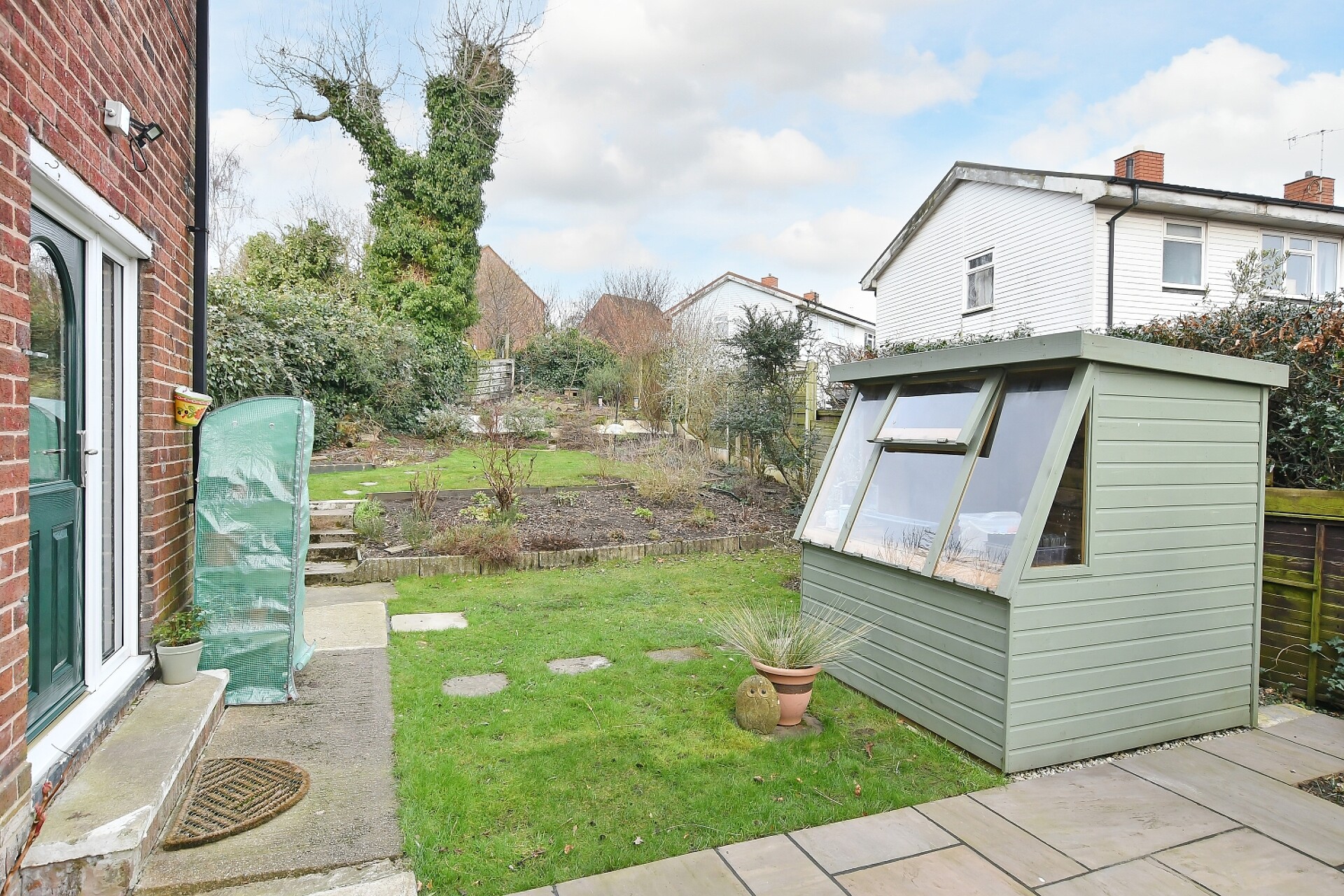The property enjoys a good sized corner plot with a paved patio area, herbaceous borders and lawn with a timber potting shed and brick built store, cold water tap and external lighting with a gate giving secure access. Ample street parking is available.