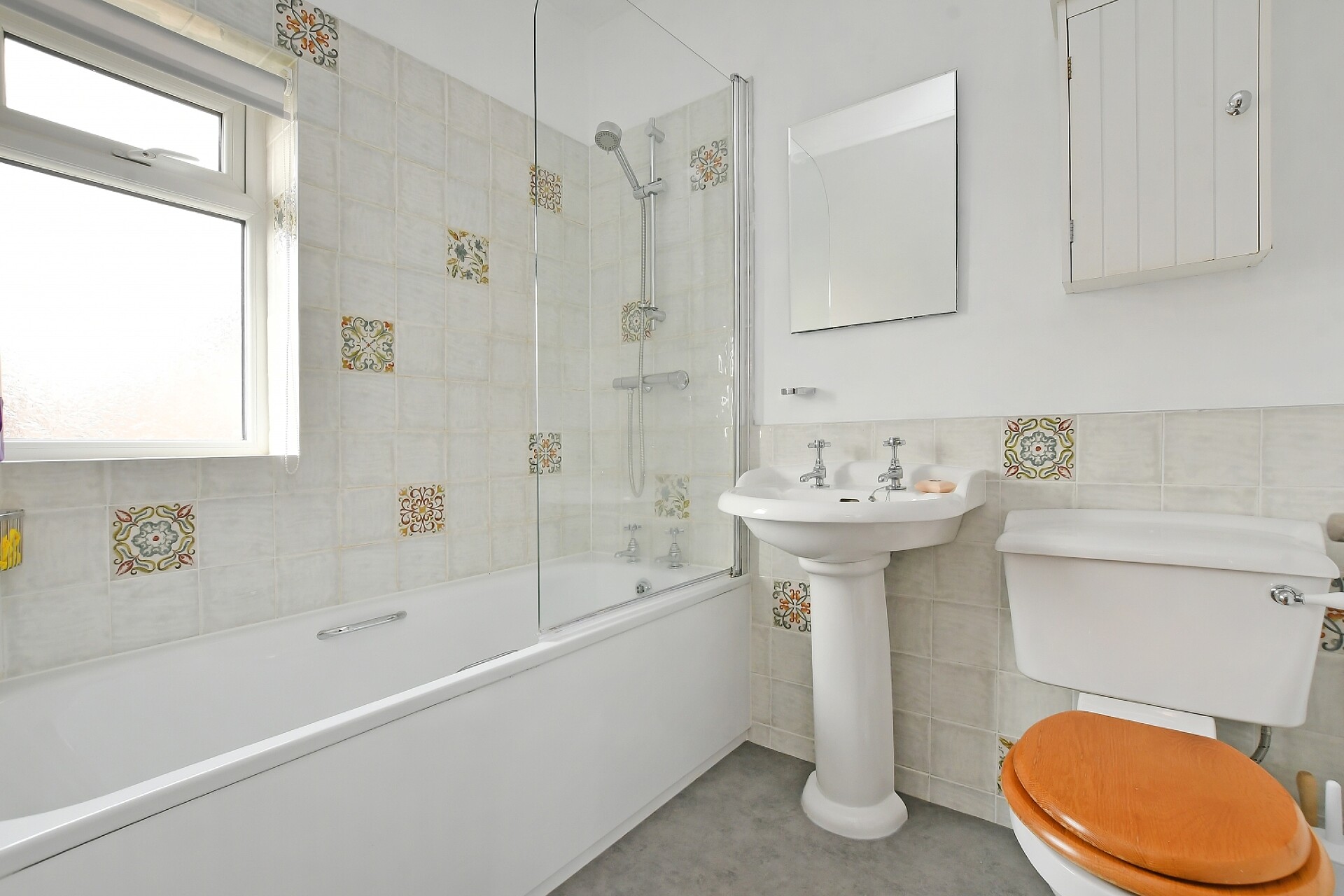To the first floor there are two good sized double bedrooms, both if which feature built in wardrobe cupboards and windows to the rear elevation with a well proportioned single bedroom and a family bathroom with a suite in white comprising a bath with tiled surround and thermostatically control shower unit over, WC and wash basin with obscure glazed window. Access to the loft space above which has been partially boarded with a drop down ladder.