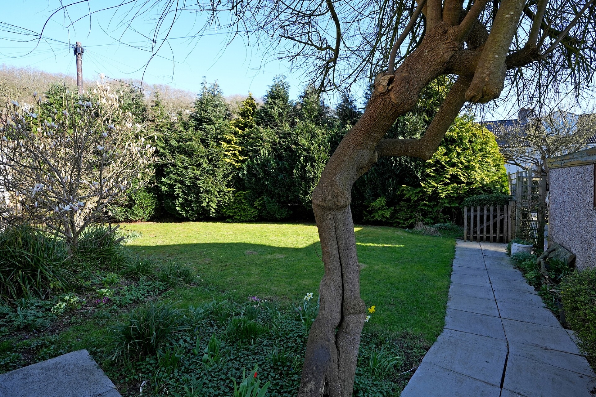 Externally, the property truly excels, boasting two driveways to the front and side, along with a detached garage. The gardens wrap around the property and are beautifully maintained, featuring a variety of mature shrubs, plants, and trees. To the rear, a patio and lawned area offer an ideal setting for outdoor dining, children, pets, and summer entertaining.