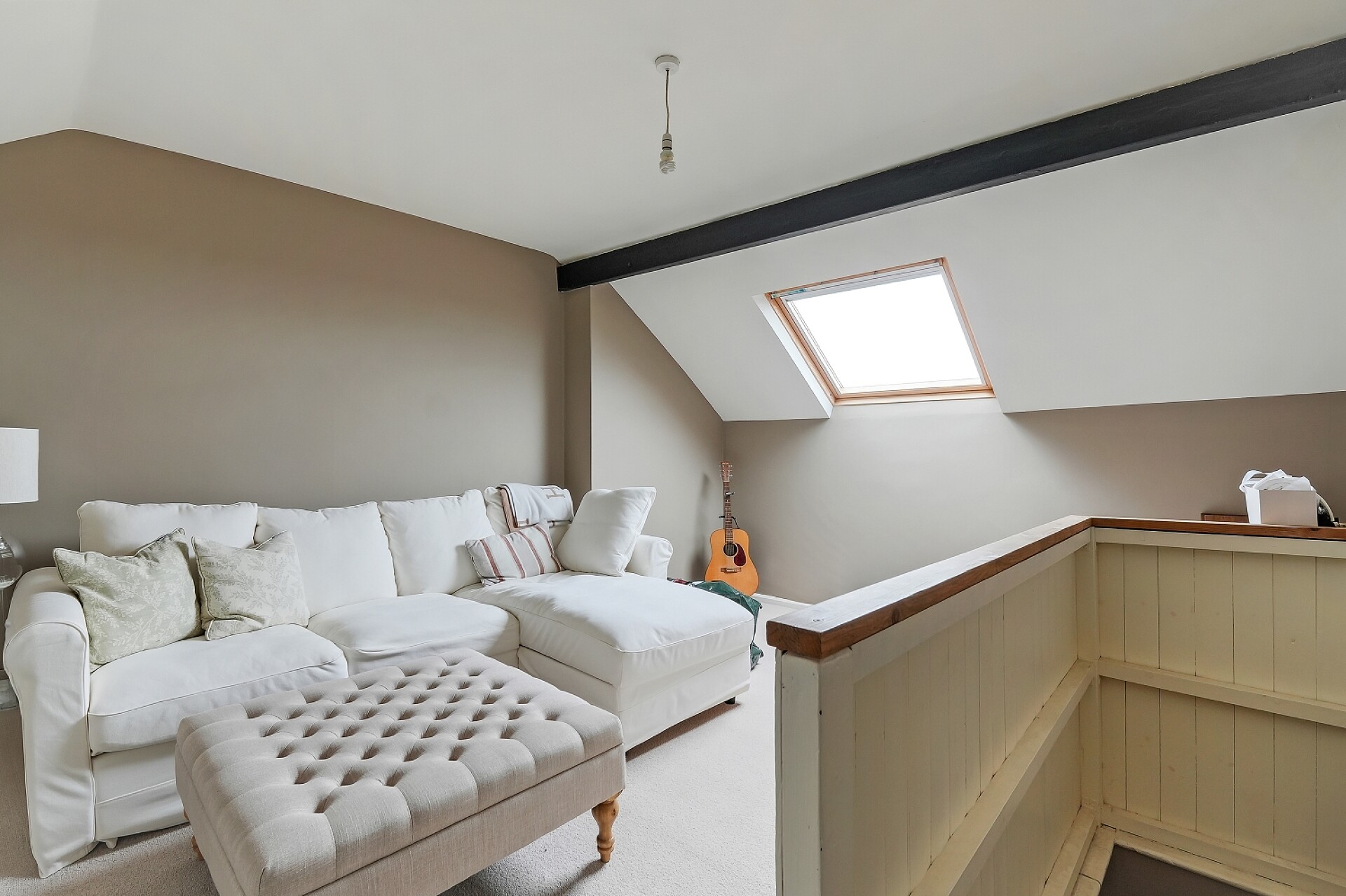 A large third bedroom featuring a rear-facing Velux window which captures spectacular far-reaching views, creating a bright and impressive space.