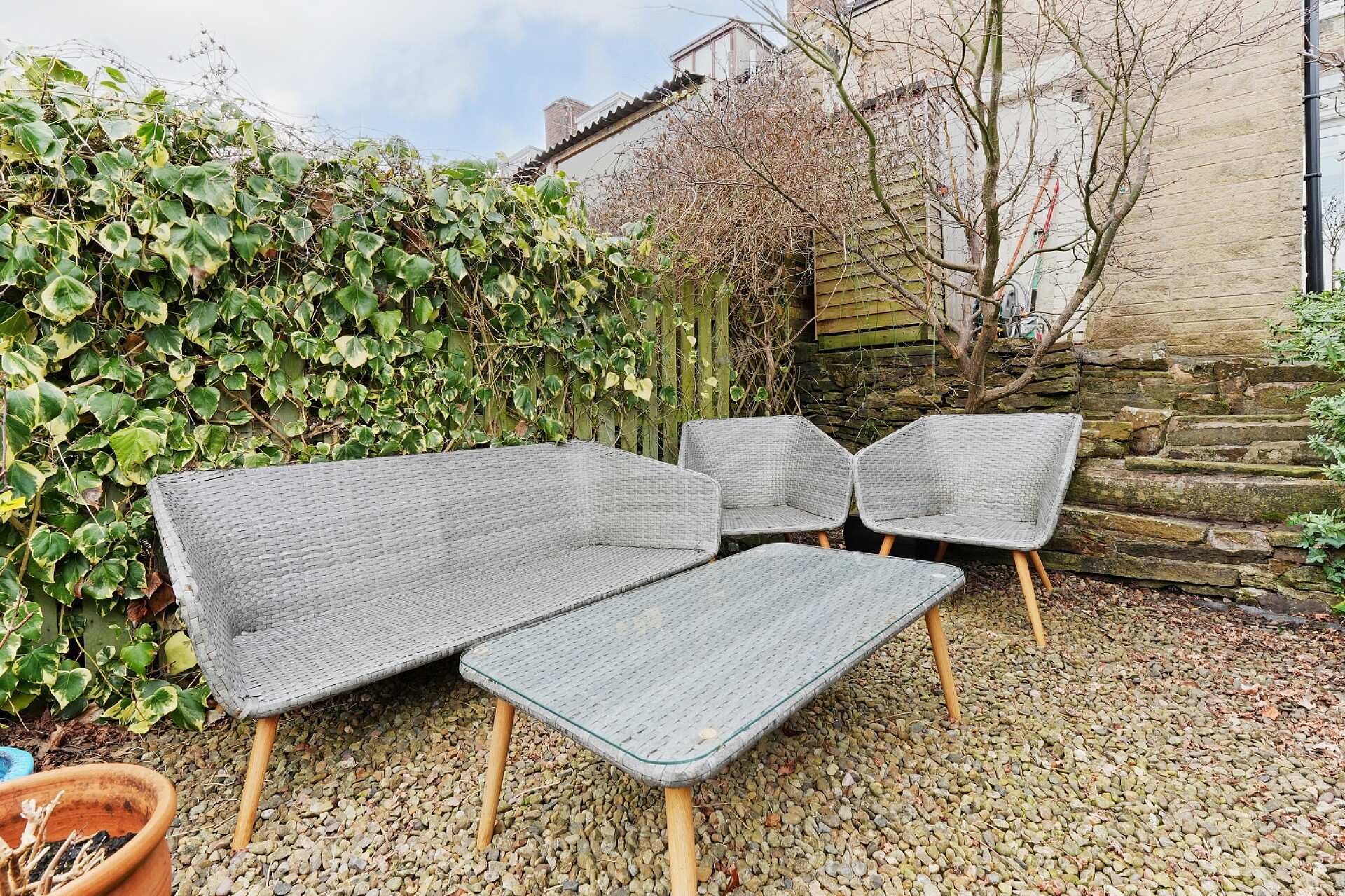 To the rear of the property is an attractive patio seating area, with steps leading down to an enclosed garden which is mainly laid to lawn, offering a pleasant outdoor space for relaxing and entertaining.