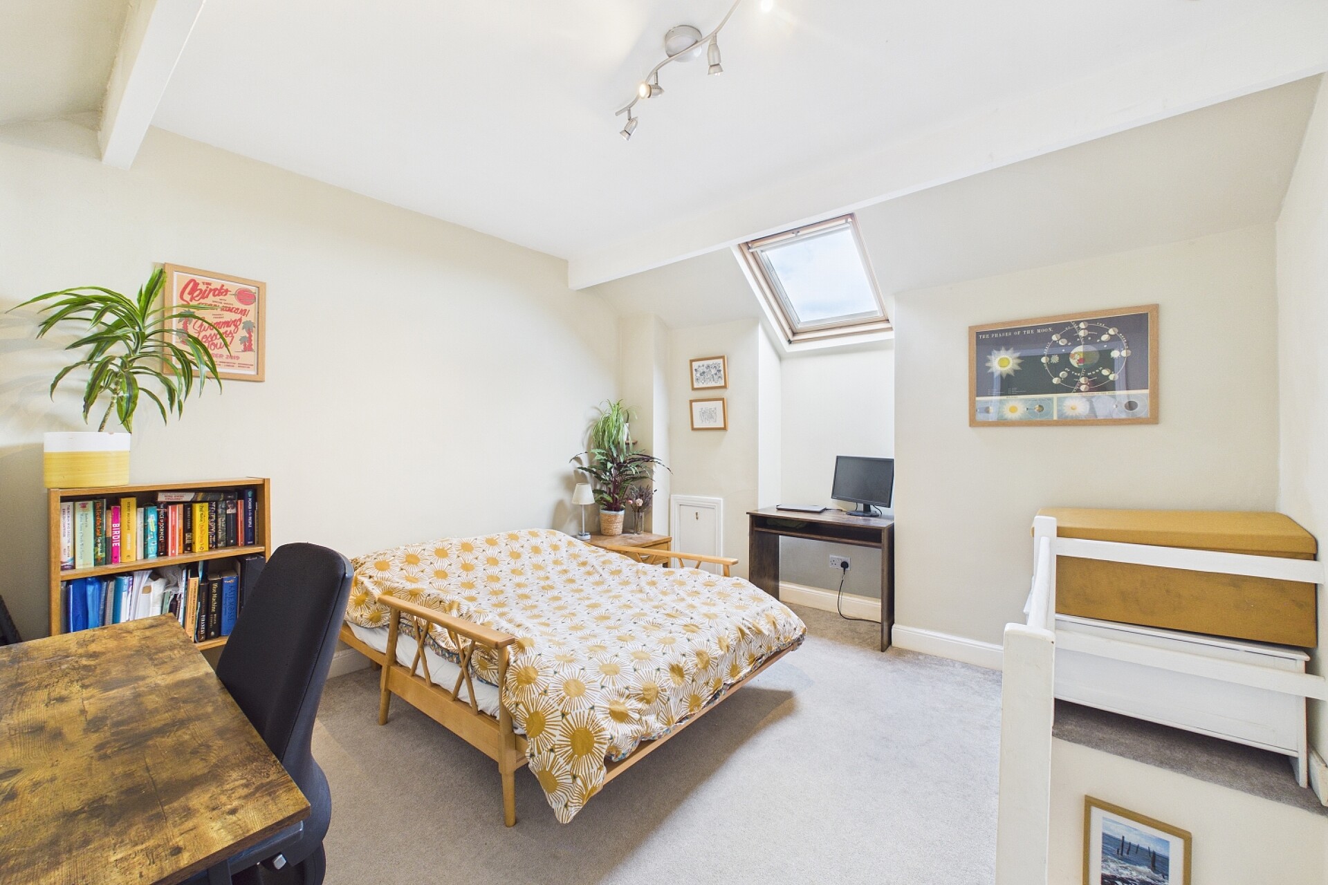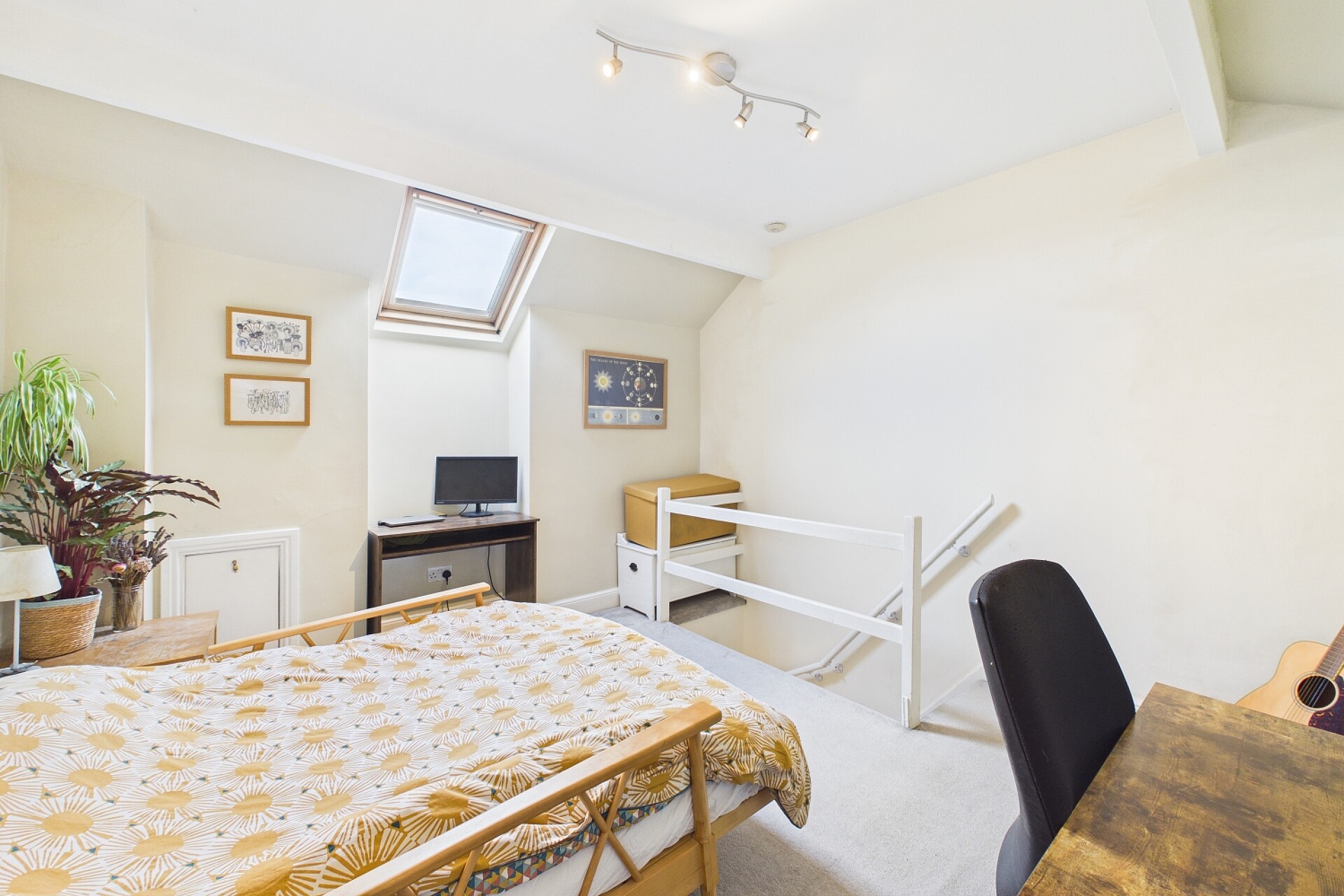 Up to the top floor is the largest bedroom which has ample natural light from the skylight and a large built in storage cupboard that allows access to the eaves for further space.