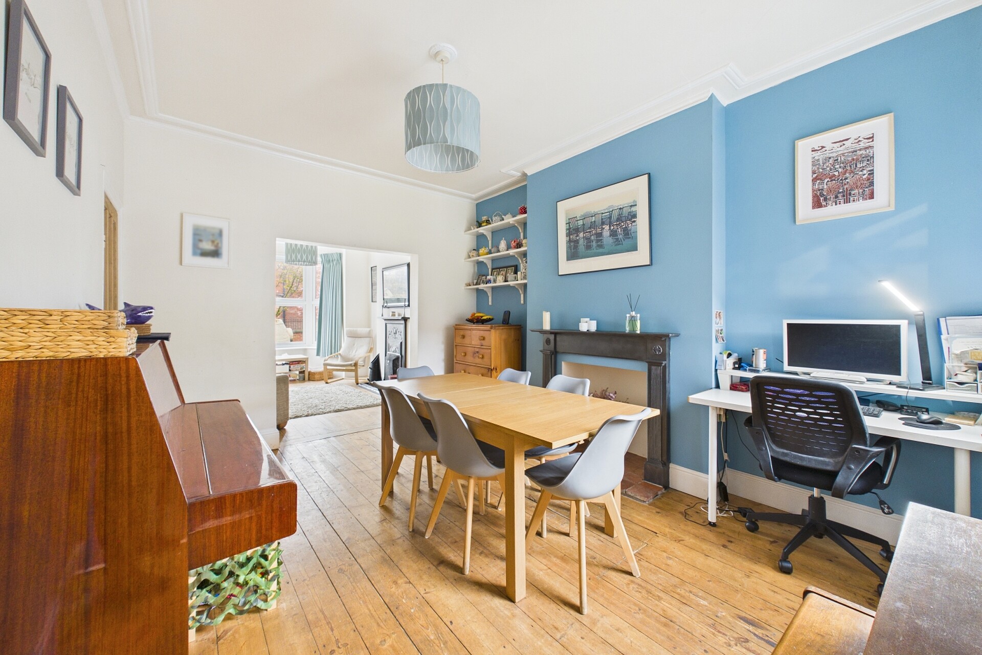 In brief, the accommodation comprises a welcoming entrance hallway with staircase rising to the first floor. To the front is a spacious bay-windowed lounge featuring an attractive period fireplace with open fire and beautiful wood flooring. The lounge opens through to a further generous dining room with rear-facing window, feature fireplace and matching wood flooring, creating an ideal space for both everyday living and entertaining.