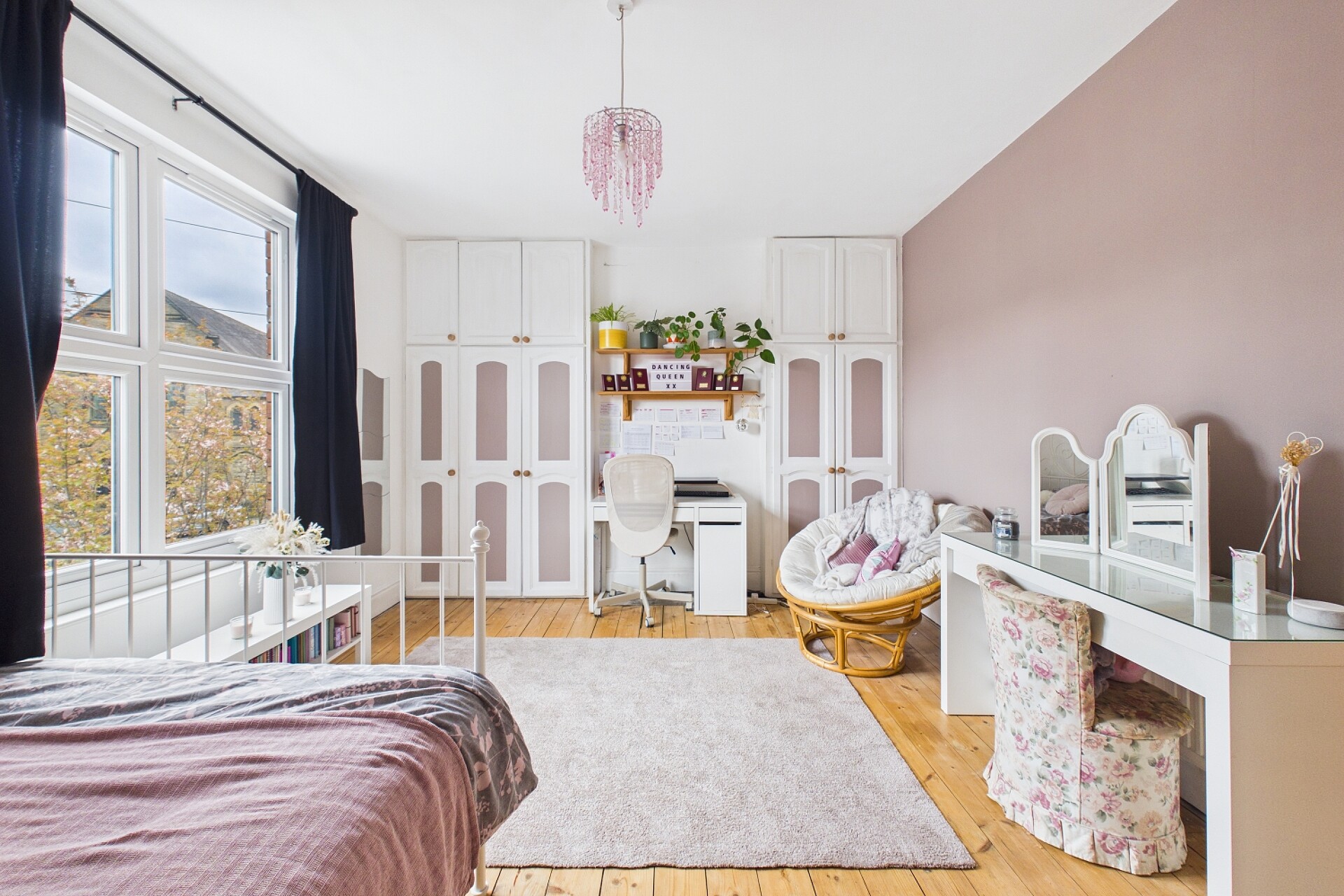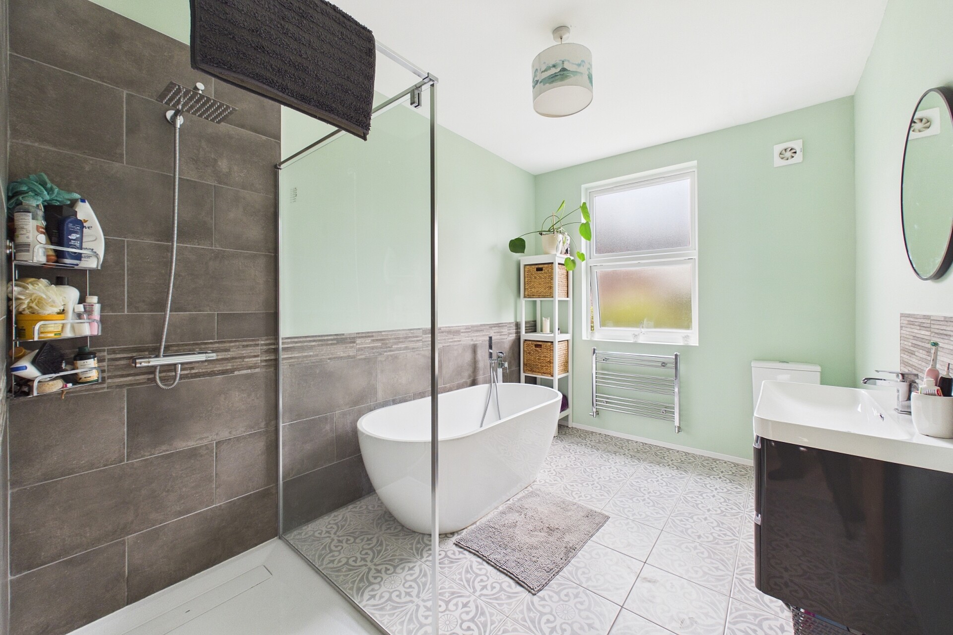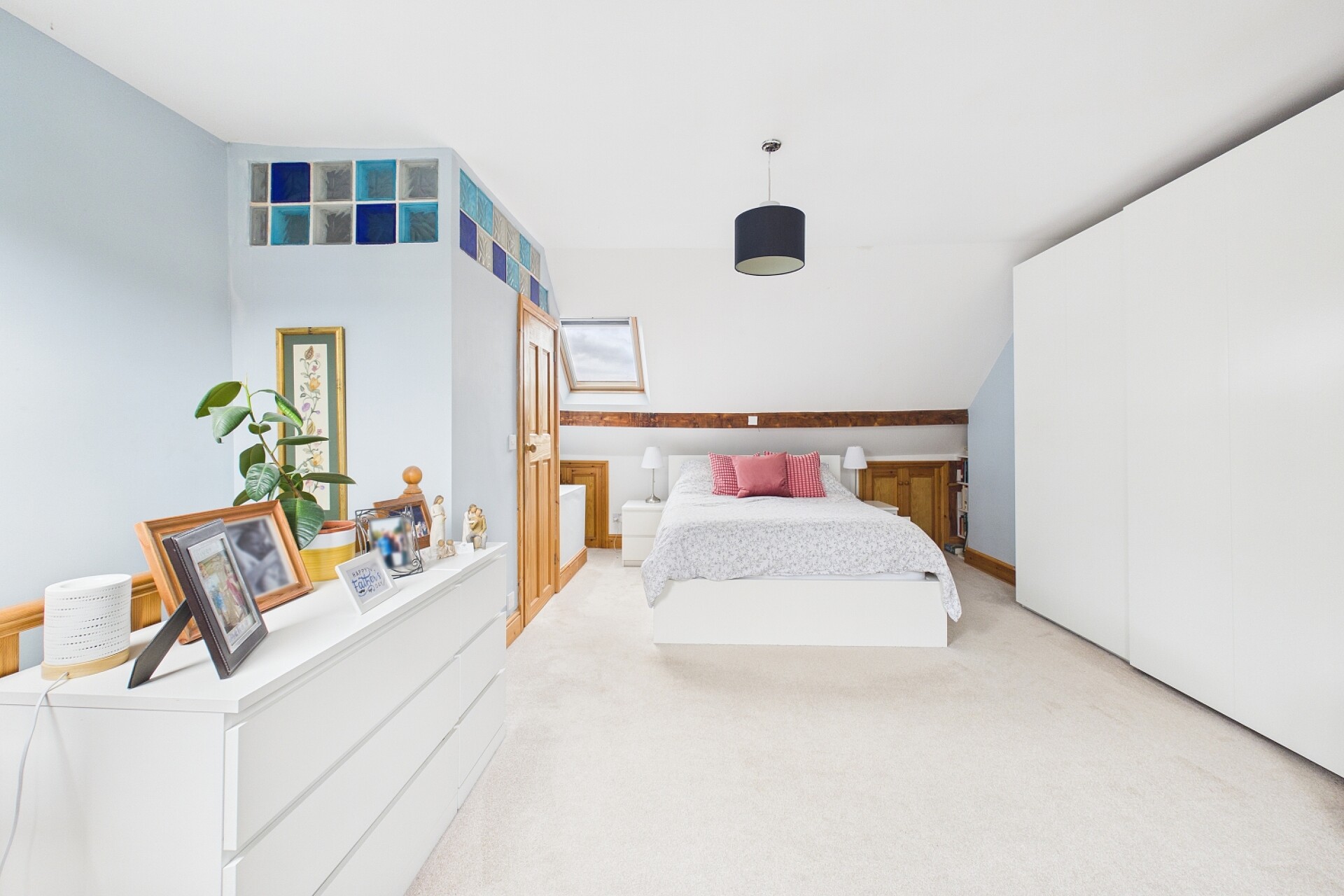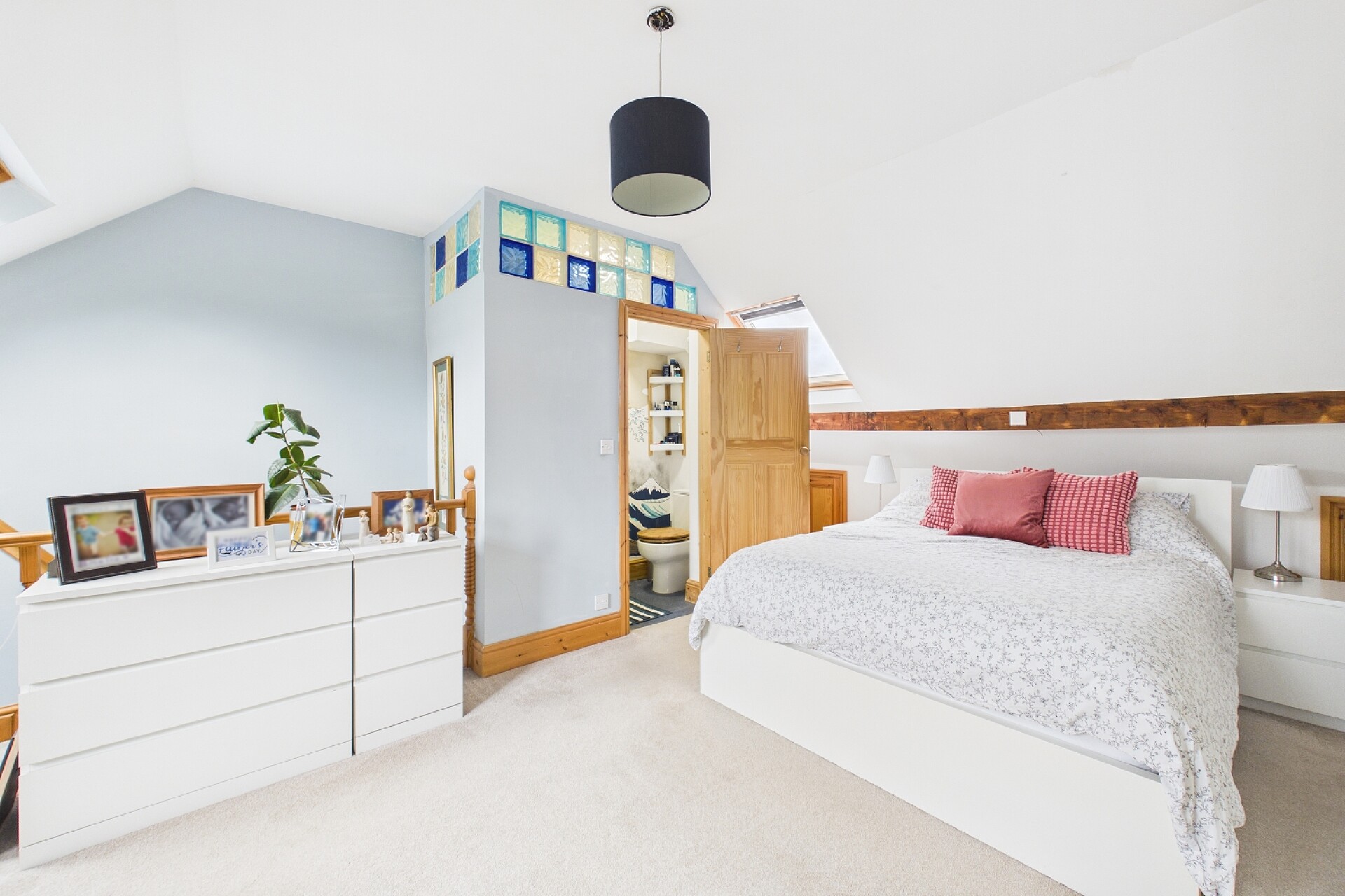 The second floor hosts a stunning principal bedroom, flooded with natural light from front and rear Velux windows together with a rear dormer window. This impressive space is complemented by an en-suite shower room comprising low flush WC, wash hand basin and shower cubicle.
