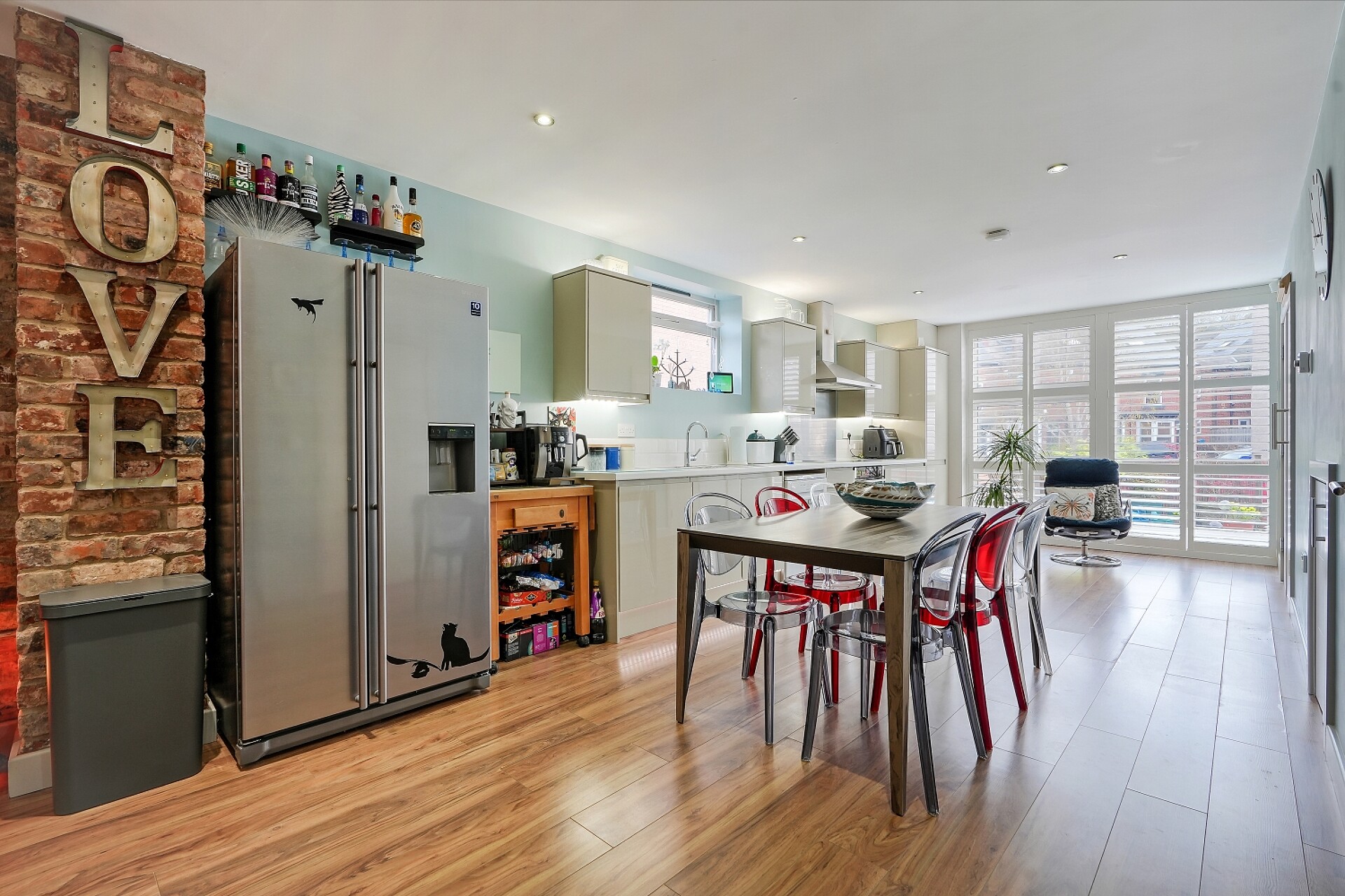 The accommodation opens into a welcoming entrance hallway which leads through to a spectacular open-plan dining kitchen, living and family space. This impressive room forms the heart of the home and features an exposed brick statement wall and attractive flooring that flows seamlessly throughout the space.
