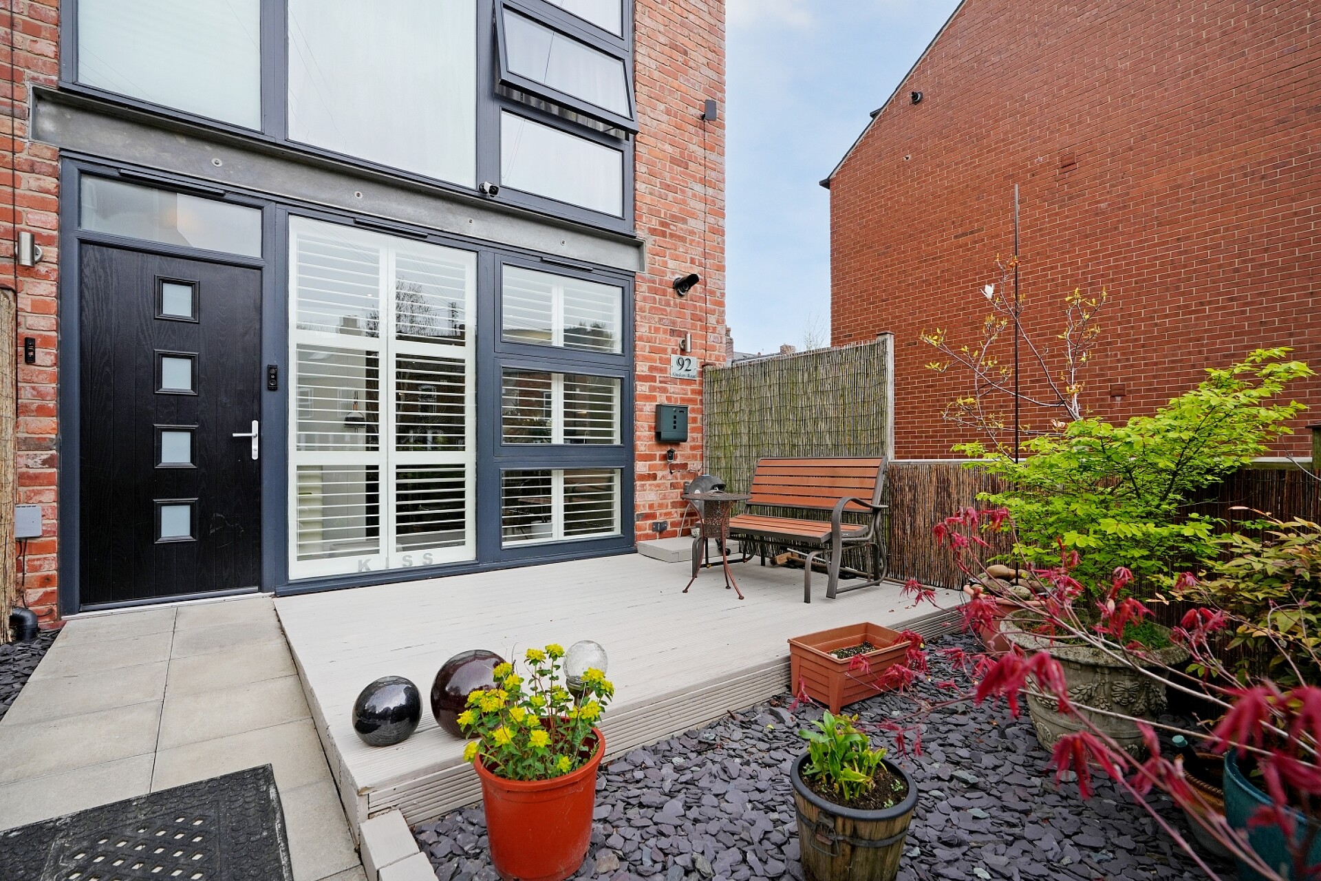 To the front of the property is an attractive, low-maintenance decked garden area with patio space, providing an ideal outdoor setting for relaxing and entertaining.