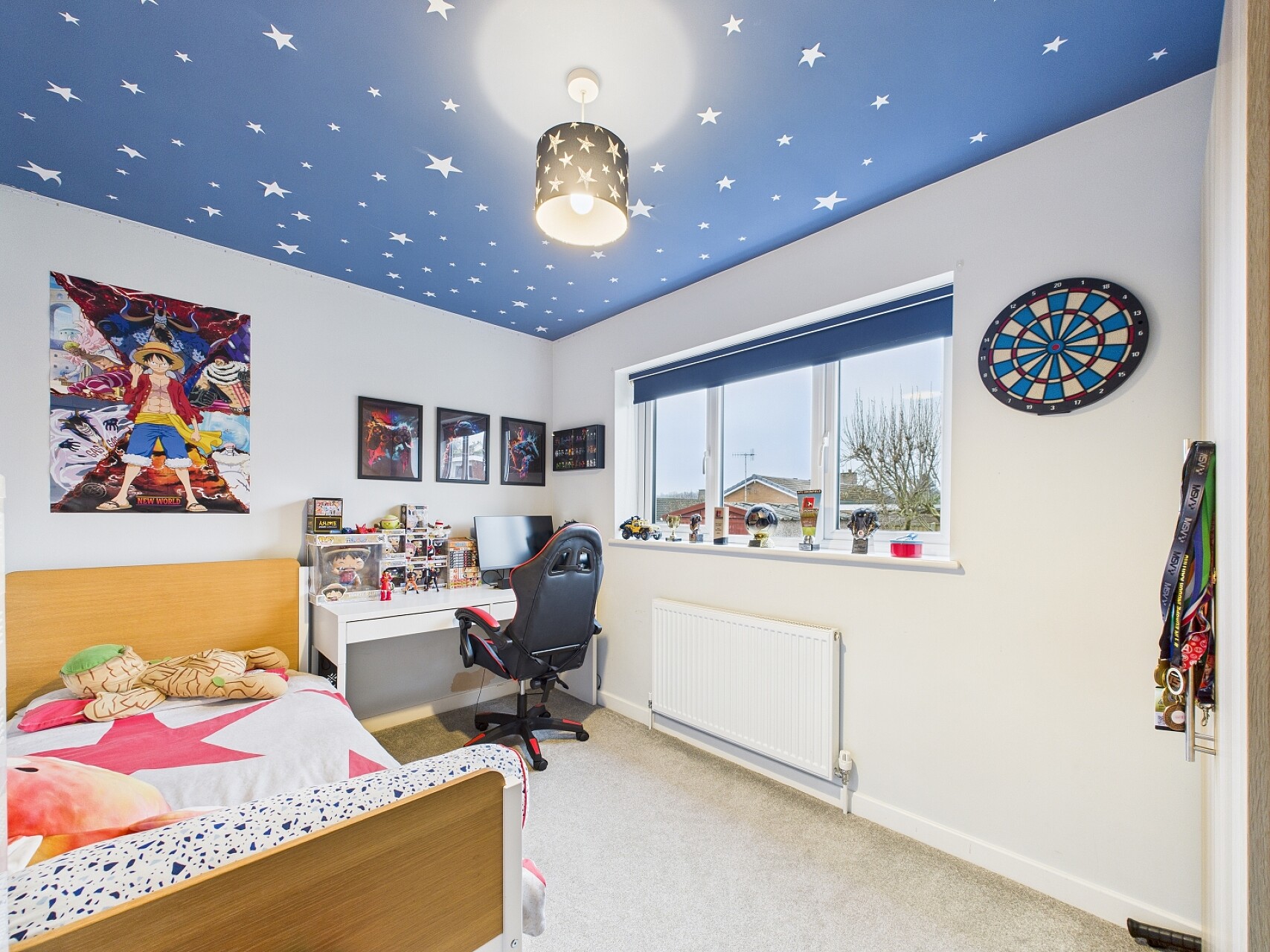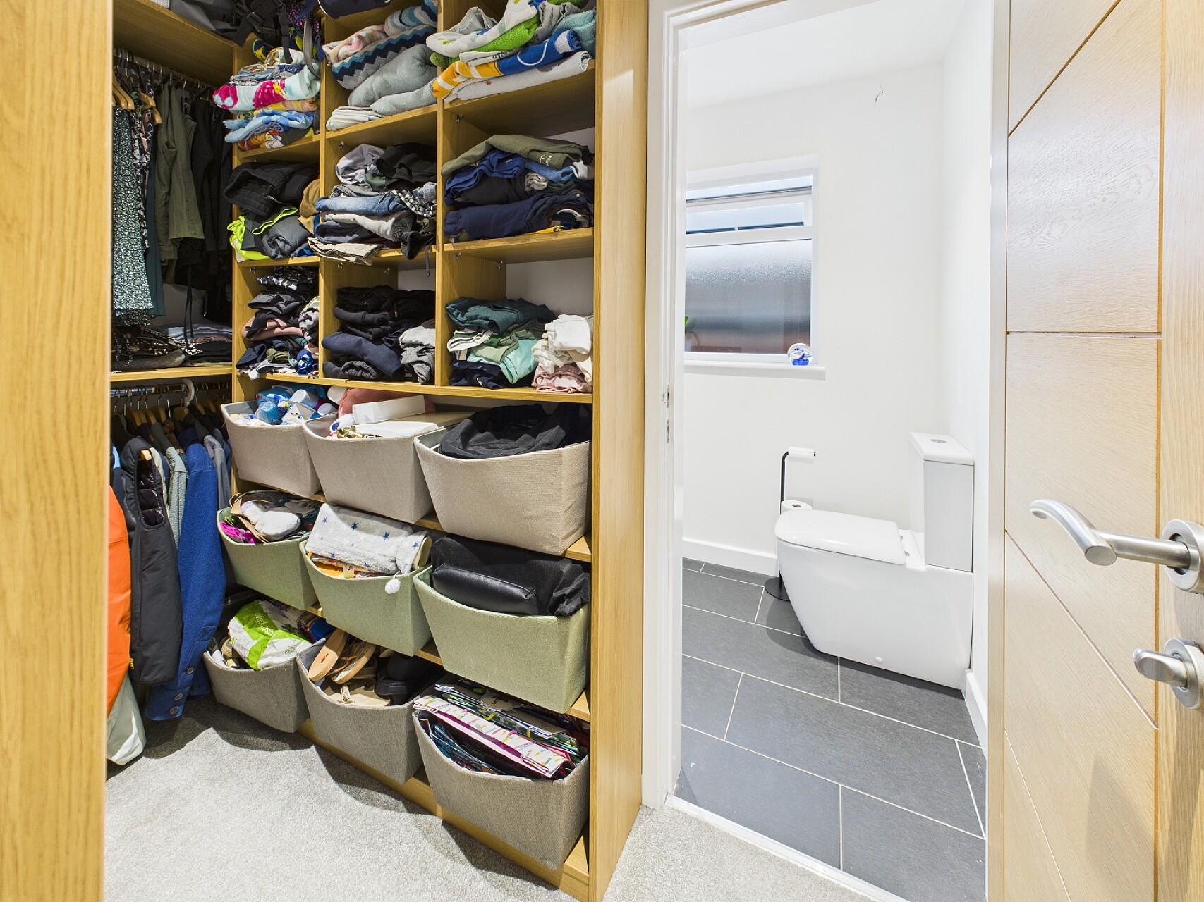 The accommodation is highly adaptable, featuring a generous master bedroom suite complete with walk-in wardrobe and stylish en-suite shower room. There are three further double bedrooms, offering flexibility for children, guests, home working or hobbies. The spacious family bathroom is beautifully appointed and features both a bath and a separate walk-in shower, ideal for busy family life or visiting guests.