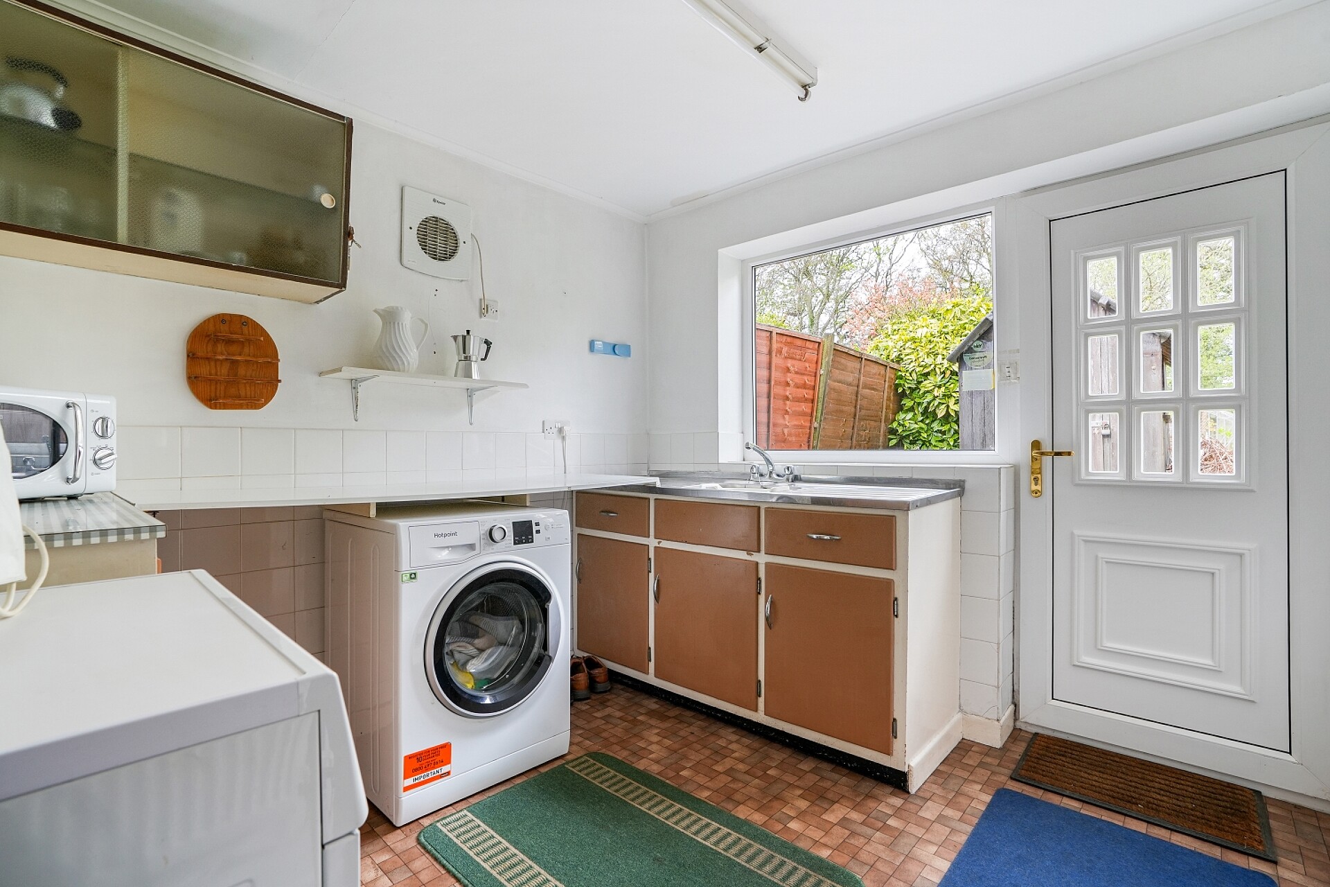 The kitchen is well equipped with an excellent range of fitted wall and base units and features a large rear-facing window overlooking the garden. There is ample space for informal dining, a large pantry and a door leading through to the utility room. The utility room provides additional fitted units along one wall, a rear-facing window, and a door opening onto the rear patio. An internal door also provides access to the integral double garage, which benefits from two up-and-over front doors, two side-facing windows, power, and lighting.
