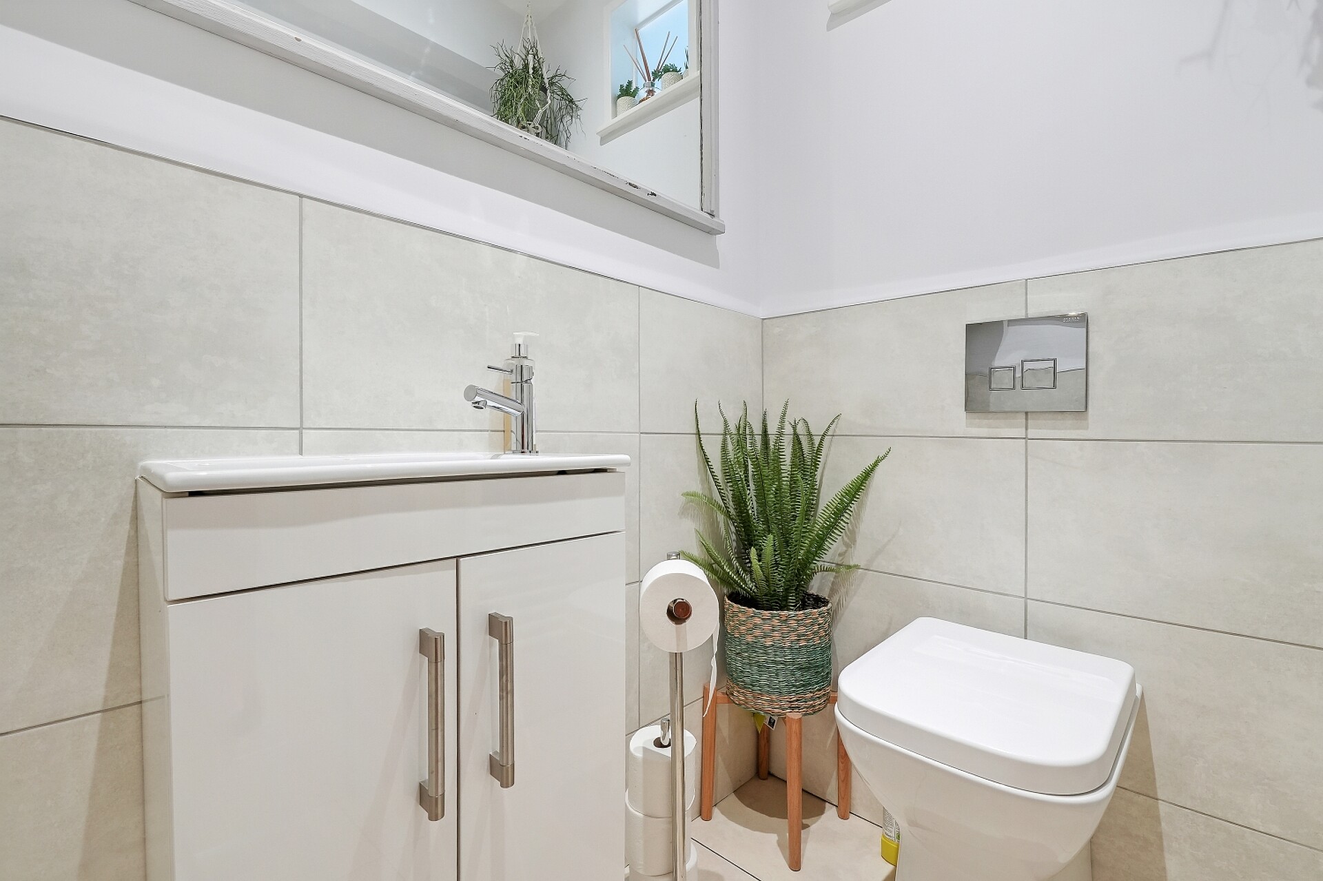 To the front of the property is a versatile reception room, currently used as a lounge but equally adept as a generous double bedroom, a great, light and airy space with large front facing window and stylish LVT herringbone style flooring. A practical utility room is fitted with a range of base units and provides plumbing for a washing machine together with space for a tumble dryer.