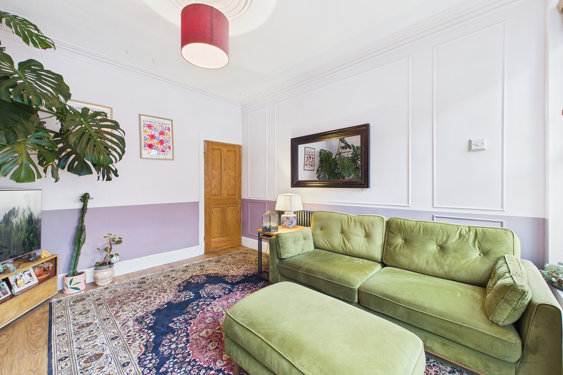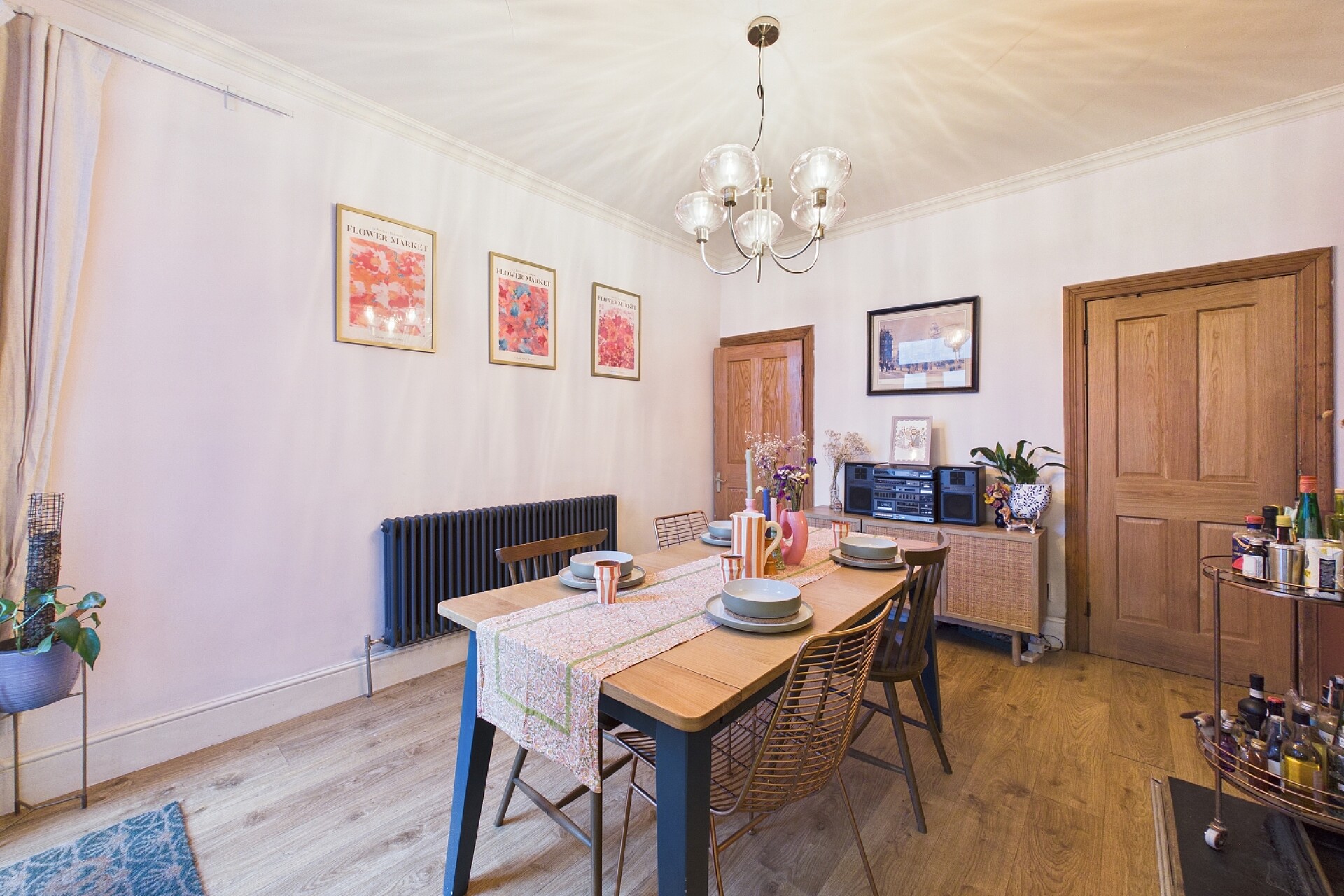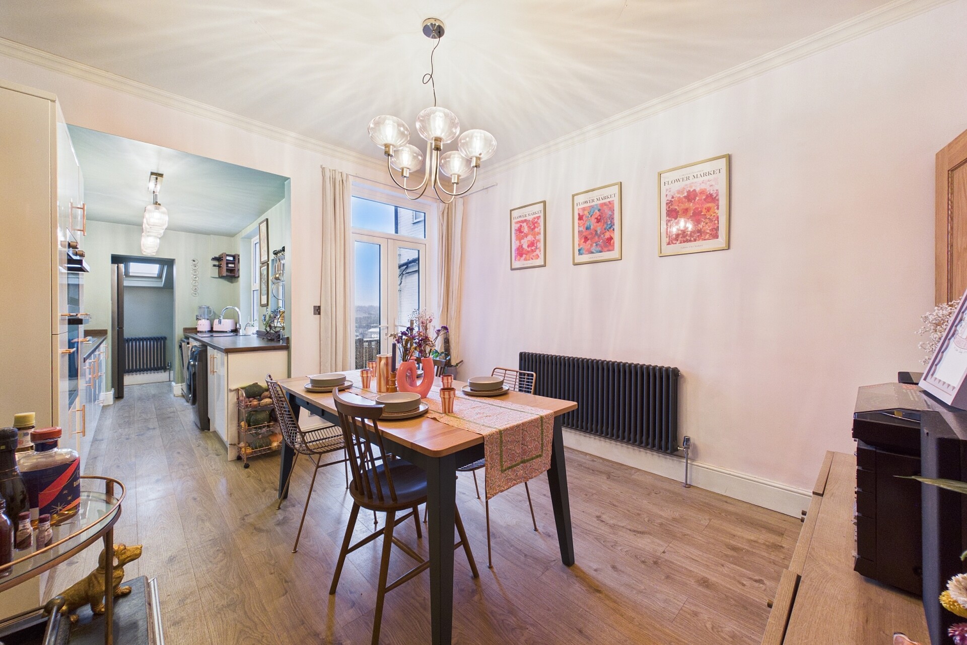 Am impressive room which is made bright and airy by virtue of the large front facing bay window and additional window. The focal point of the room is the beautiful period feature fireplace. Additional period features include ceiling coving with rose and wall panelling.