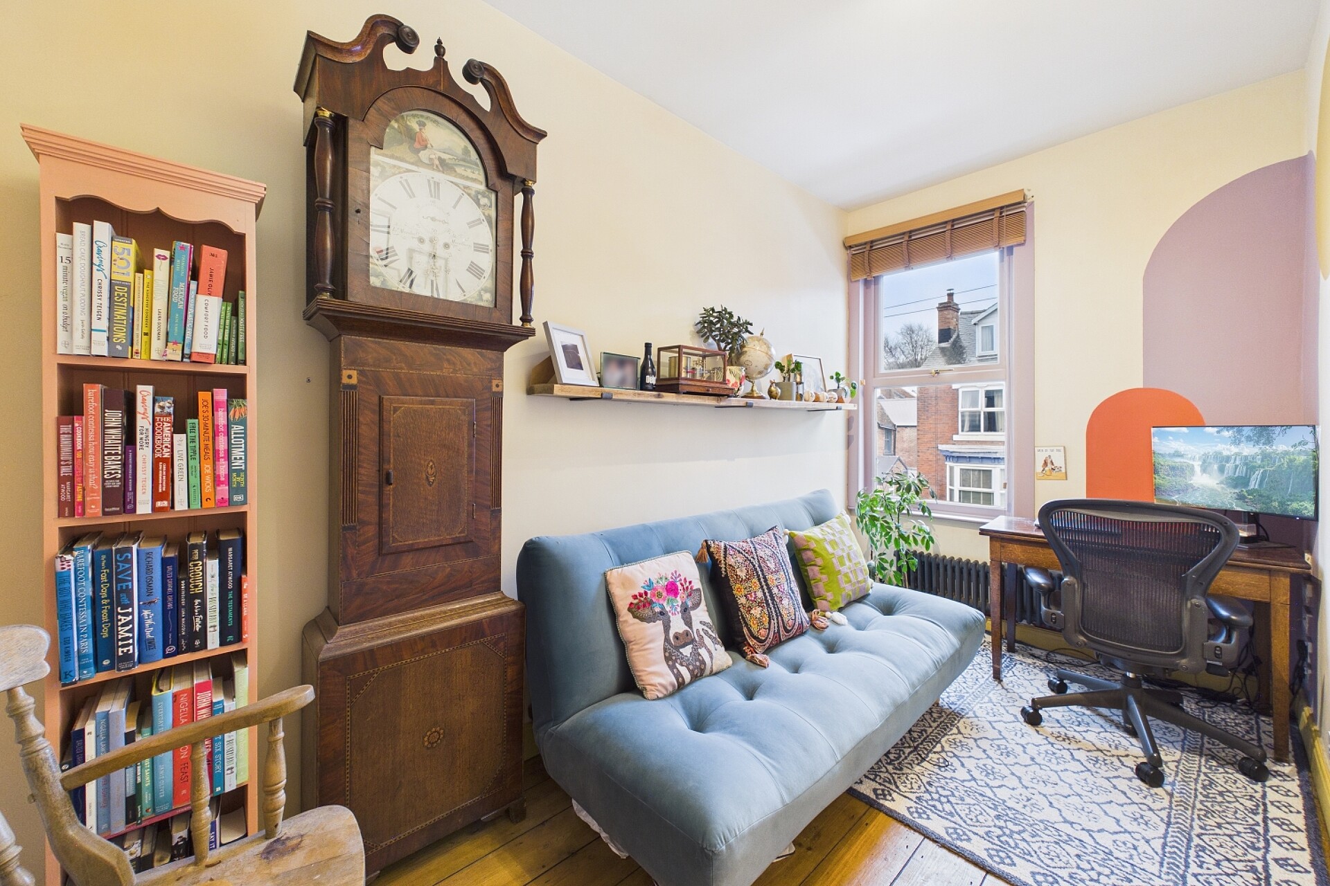 Up to the first floor which offers a versatile mix of rooms with the first bedroom being a stylish single that is currently used as an office. Next is a double that is currently used as a dressing room with fitted wardrobes across 2 walls offering substantial storage space. Across the hall to a further double bedroom with open views across the city.