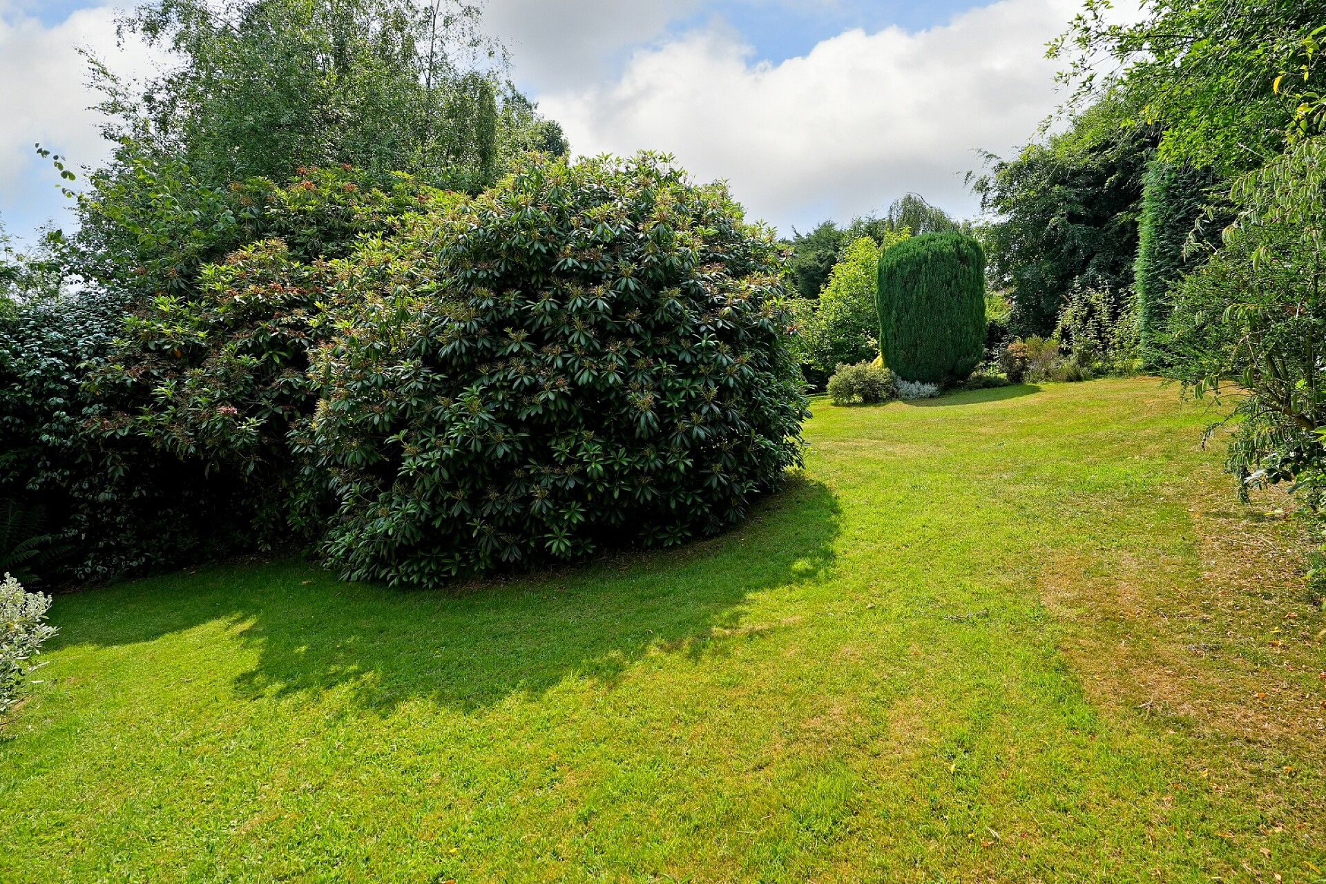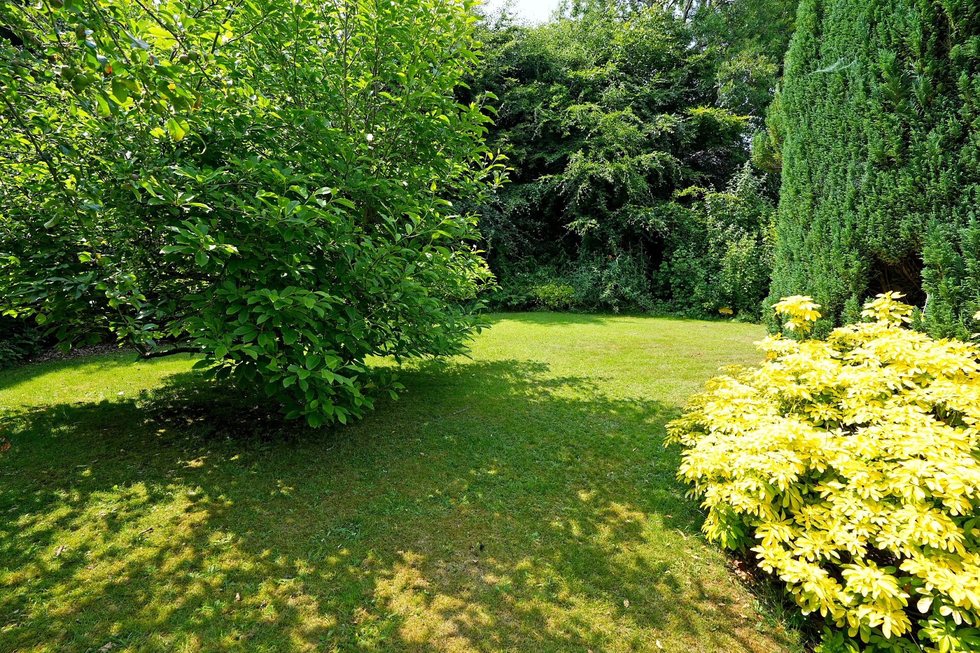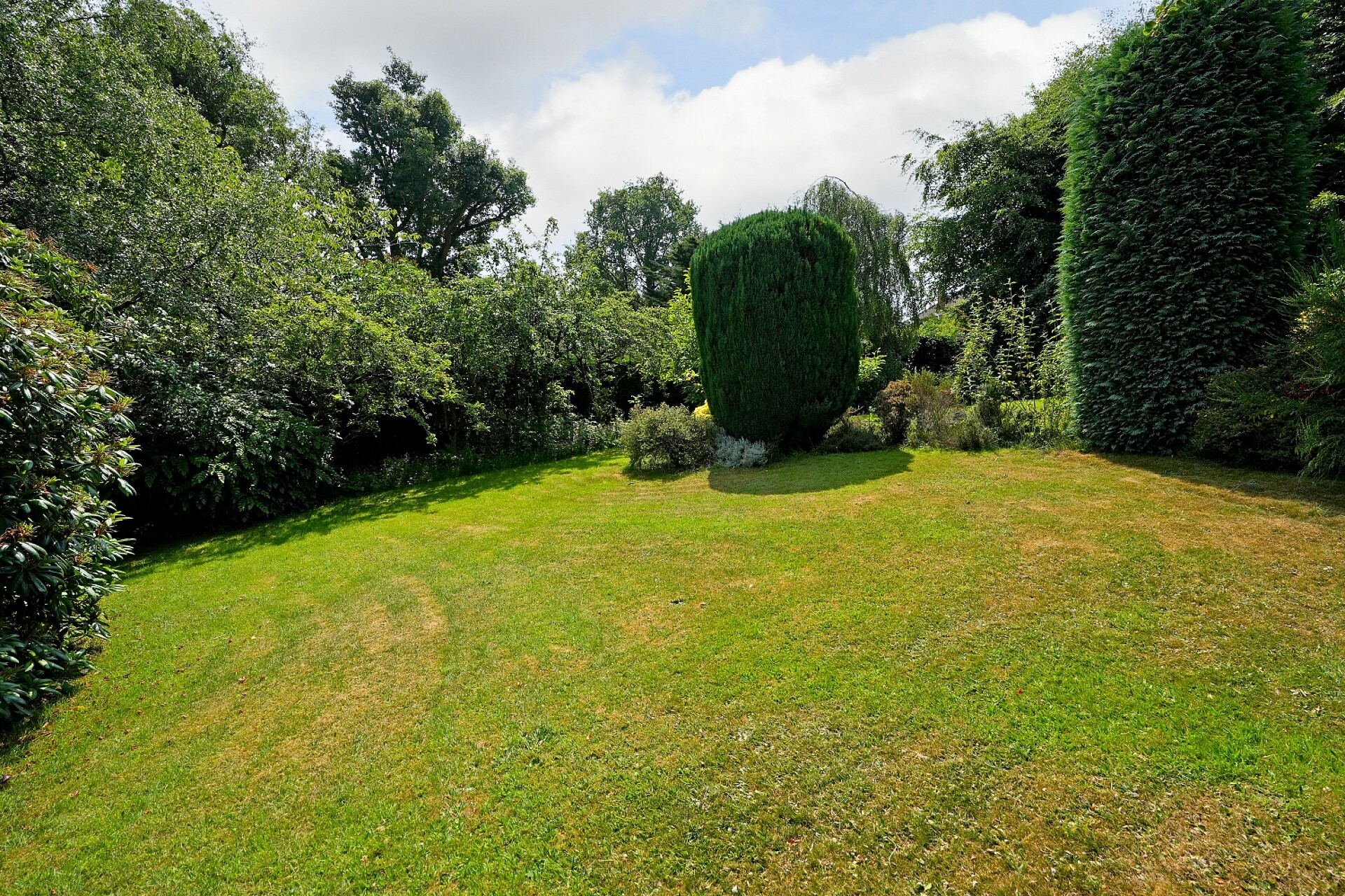 The extensive south-facing rear garden is a standout feature—beautifully private and mainly laid to lawn, complemented by mature trees and established planting that create a peaceful and secluded setting ideal for families and outdoor entertaining.