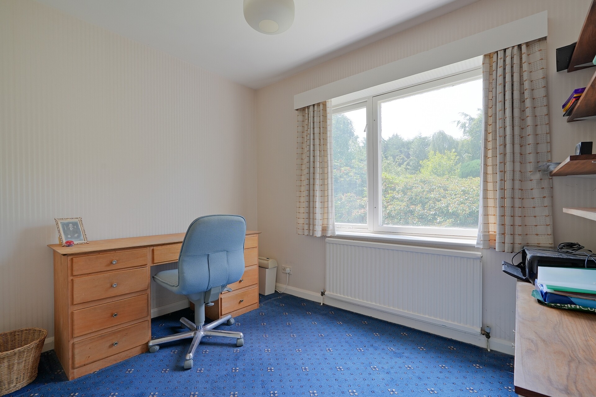 The principal bedroom is generously proportioned, enjoys a pleasant open aspect to the front, and benefits from fitted furniture.